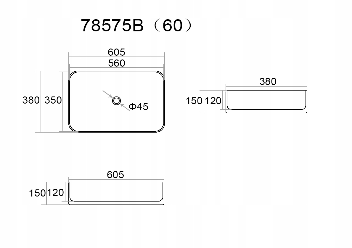 - Форма раковины: прямоугольная