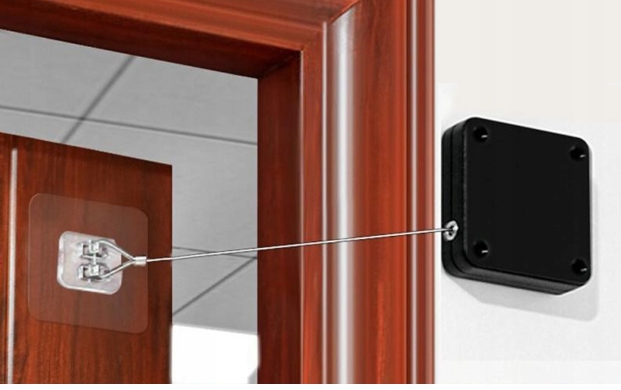⭐Очень простой монтаж и эксплуатация – достаточно приклеить доводчик на стену. и специальный держатель на дверных створках, затем натяните стальной трос и прикрепите его к ручке.