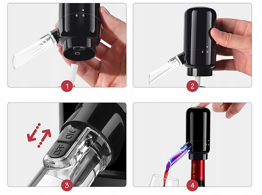 🍷【Не проливается】Этот высококачественный электронный графин хорошо помещается в вашей бутылке красного вина, не допуская появления графинов и пролитого вина. Угол выпускного отверстия для вина тщательно продуман, а удлиненная трубка для выпуска вина позволяет жидкости падать в бокал под удобным углом и с удобной силой удара, что предотвращает разбрызгивание большого количества алкоголя и ухудшение внешнего вида бокала. p>