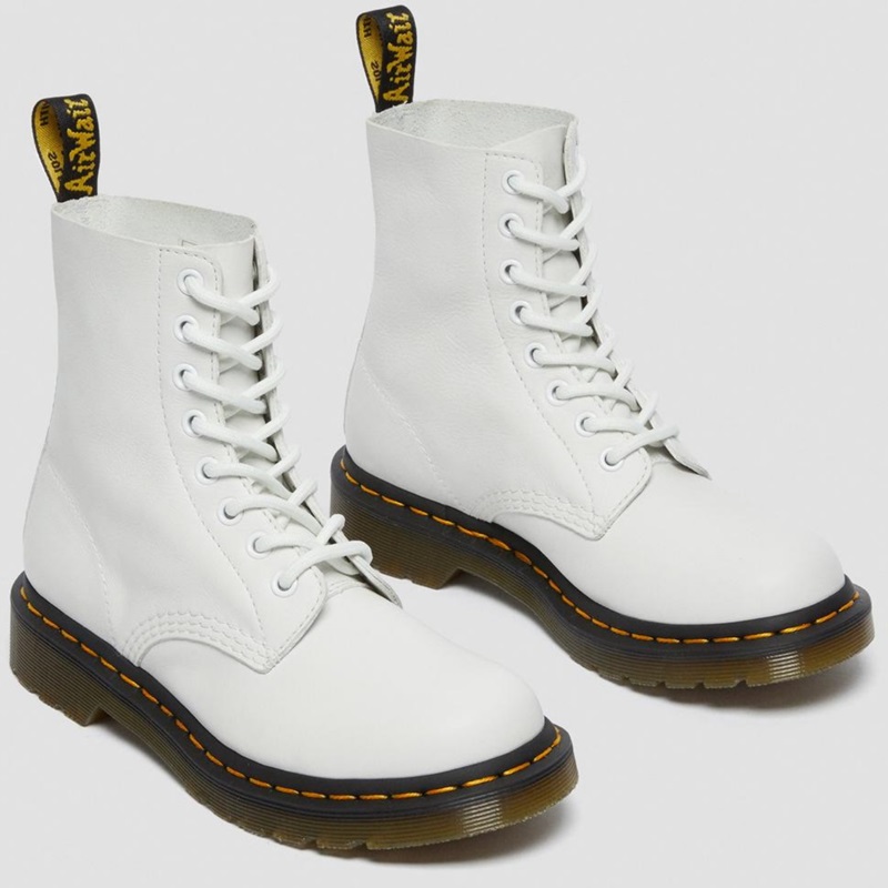 Классическая модель #PASCAL с восемью отверстиями из коллекции обуви Dr. Док Мартенс. Изготовлен из мягкой натуральной кожи высочайшего качества белого цвета. Подошва пришита к верху обуви знаменитой желтой нитью (технология Goodyear Welted). Подошва имеет так называемую характеристику обуви Dr. Martens. подушка безопасности.