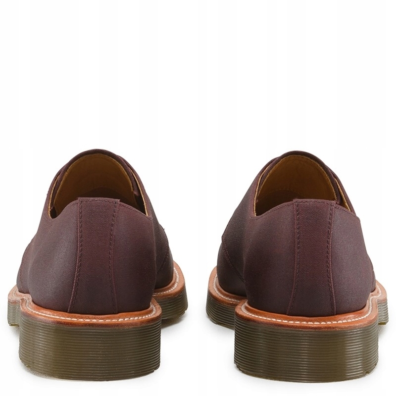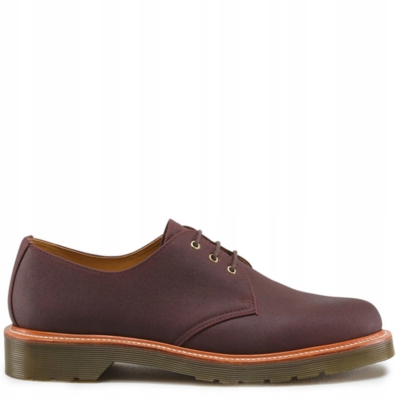 Классические туфли из коллекции обуви Dr. Док Мартенс. Строка #ЛЕСТЕР. Выполнена из плотного, пропитанного холста темно-бордового цвета (античная бычья кровь). Вощеные шнурки с металлическим наконечником, золотые люверсы для шнурков и элегантный кожаный ободок подчеркивают уникальность и изысканность этой модели. Кожаный салон и вставки. Подошва пришита к верху обуви с помощью знаменитой в этой модели легкой нити (технология Goodyear Welted). Подошва имеет так называемую характеристику обуви Dr.Martens. подушка безопасности.
