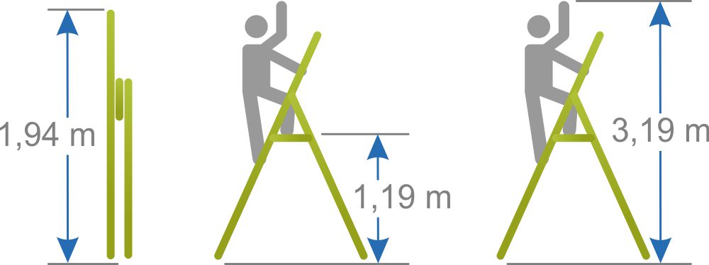 - Высота может достигать до 3,19 м, высота платформы 1,19 м.