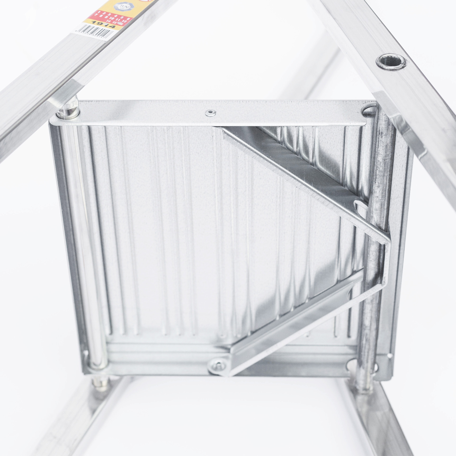 Усиление под платформой гарантирует, что она не прогнется и не сломается под вами — вы будете чувствовать себя в полной безопасности. Более того, после складывания платформа автоматически прячется в лестницу, что упрощает ее хранение.