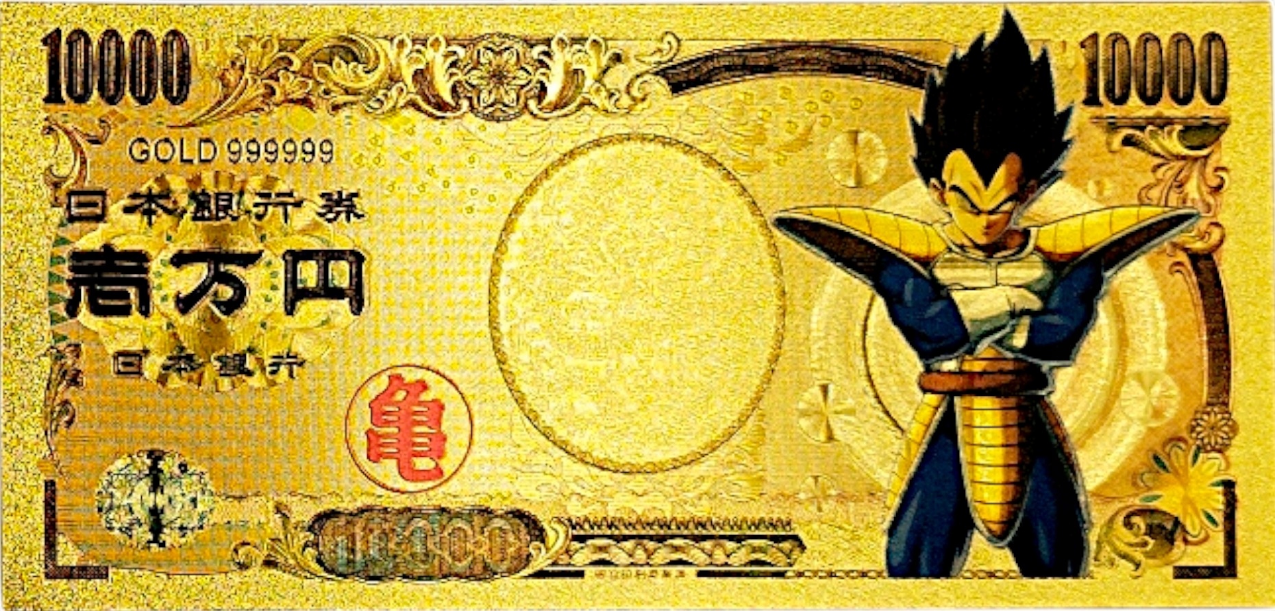Красивая золотая банкнота с персонажем vegeta z Dragon Ball с .