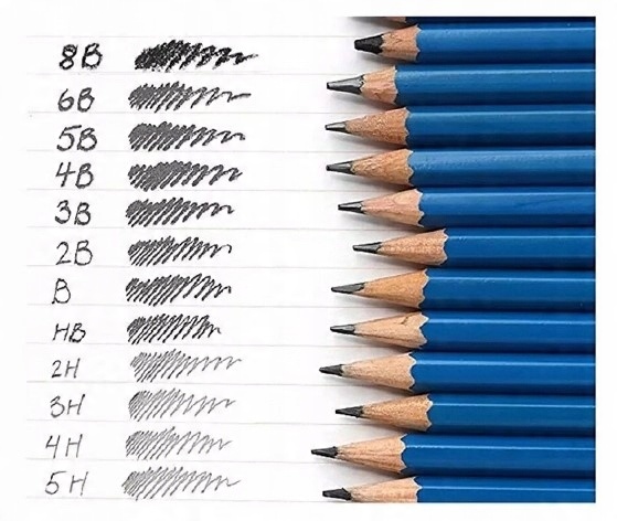 ✅ 12 карандашей для эскизов (2H / 3H / 4H / 5H / HB / B / B2 / B3 / B4 / B5 / B6 / B8)