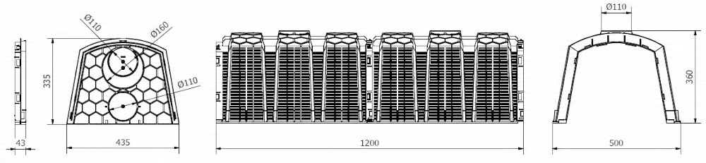 - Два соединения вентиляция Ø110 в верхней части тоннеля