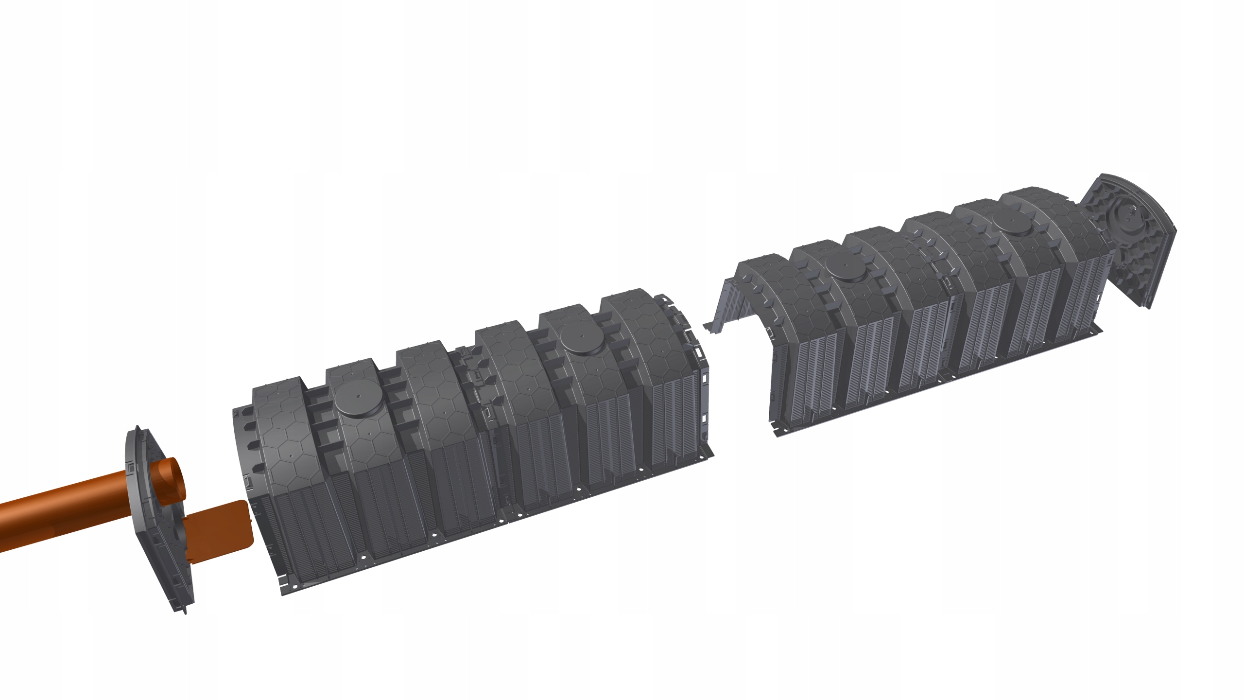 ✅ 150 инфильтрационных тоннелей изготовлены из PEHD (полиэтилена высокой плотности) методом литья пластмассы. Используемый метод производства позволяет получать продукцию компактной и легкой структуры. Каждый туннель имеет ребра, усиливающие конструкцию. Высота боковой перфорации тоннеля 300 мм. Емкость одного тоннеля 150 литров.