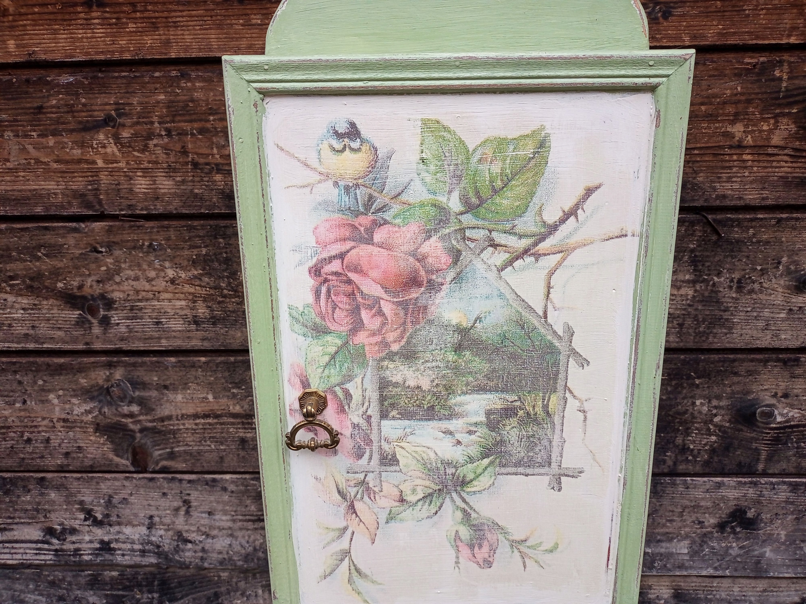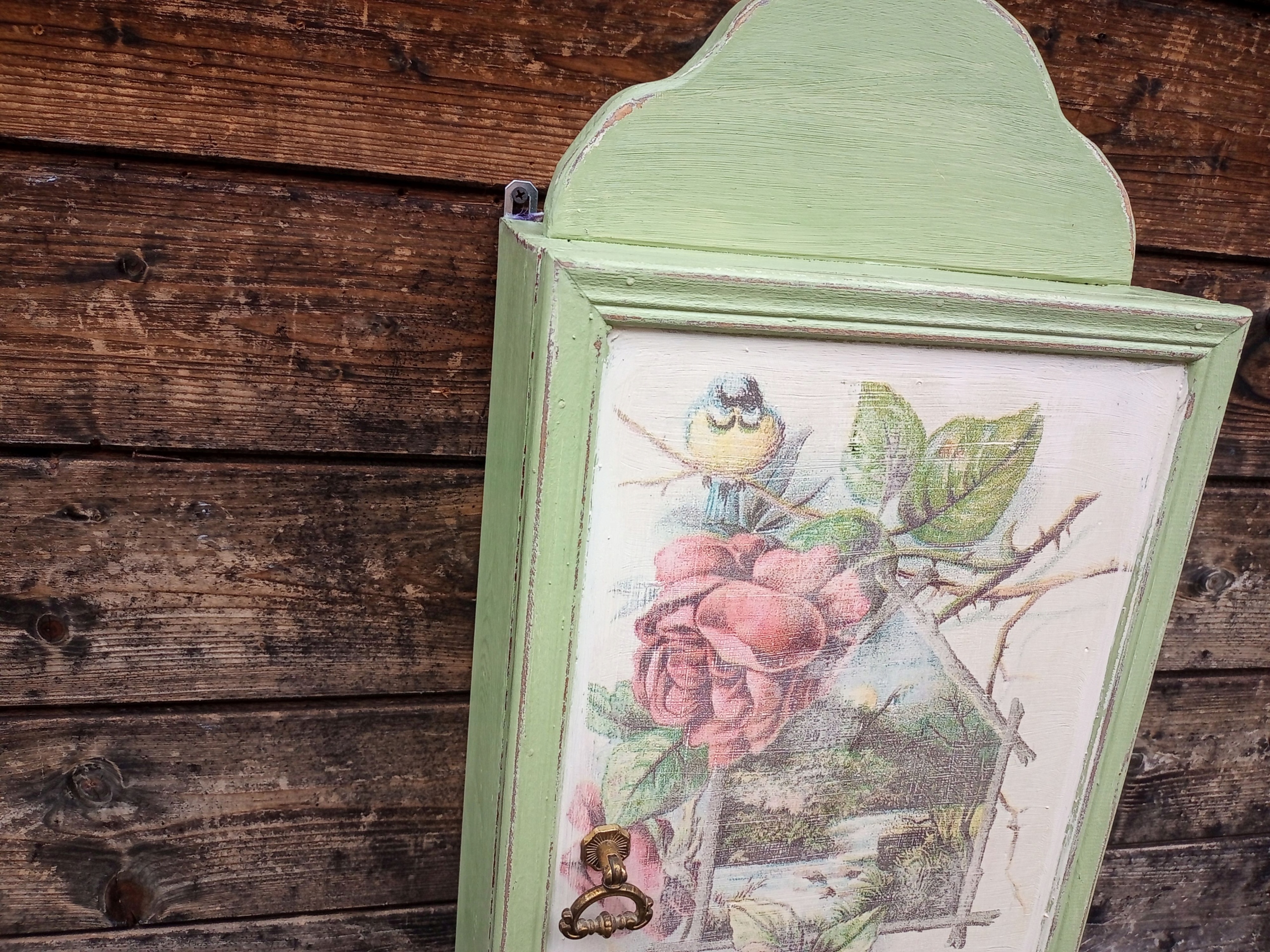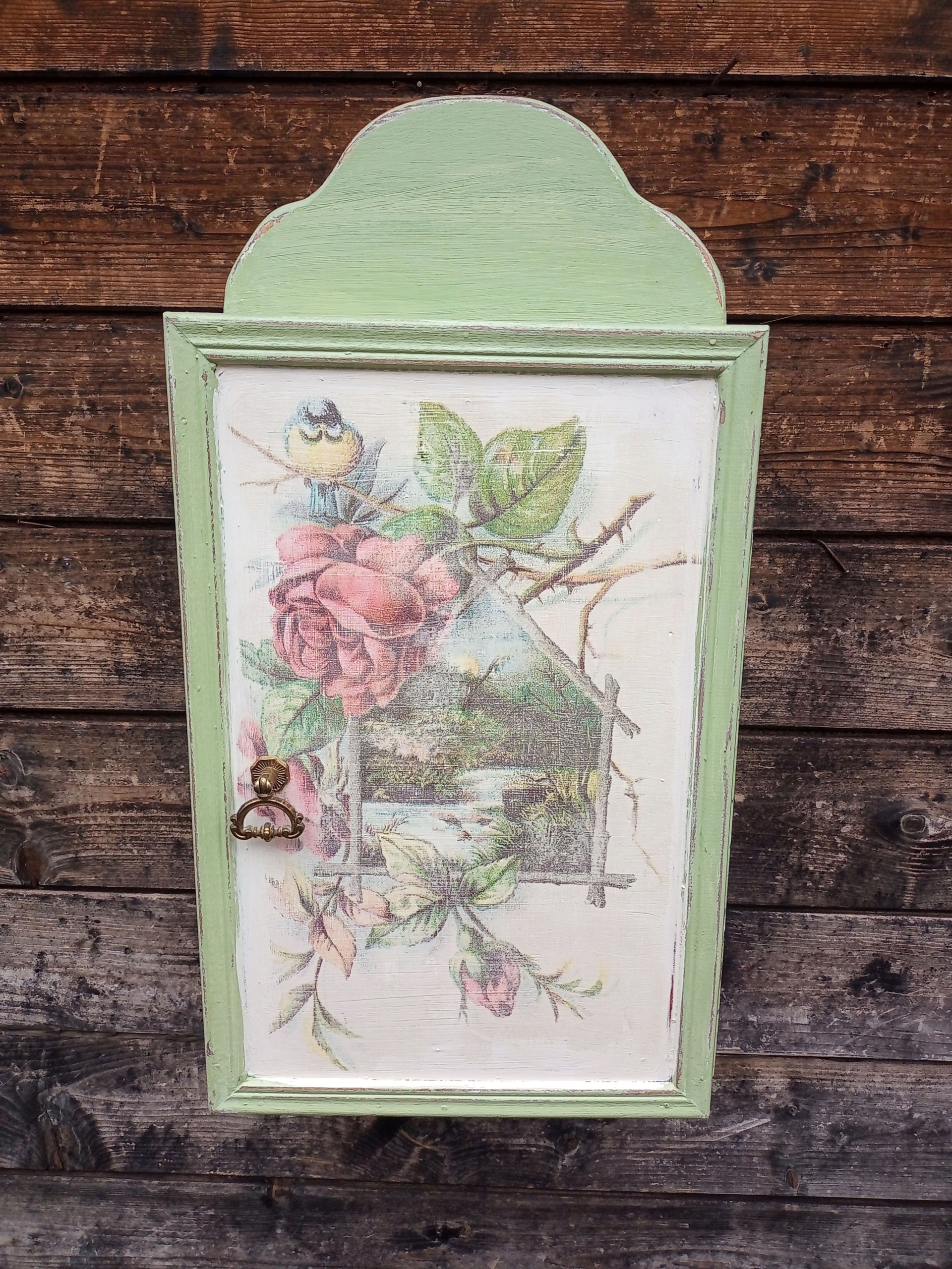 Деревянный окрашенный потертый шикарный висящий шкаф
