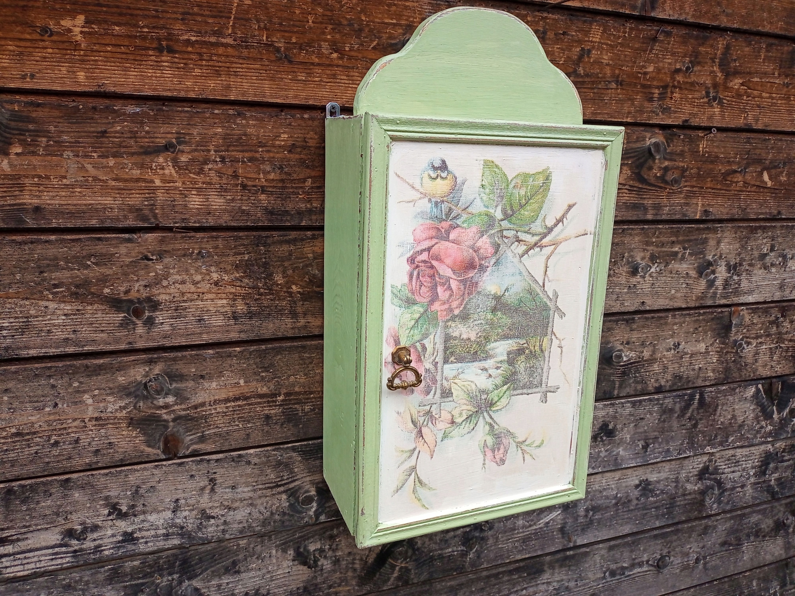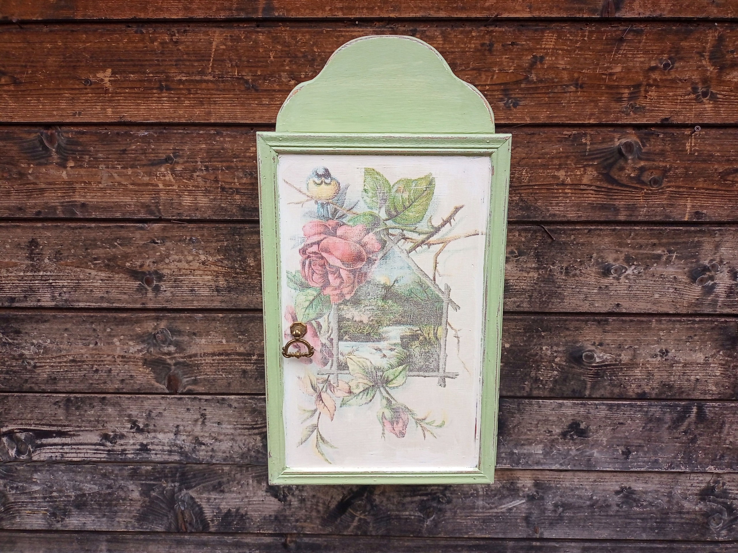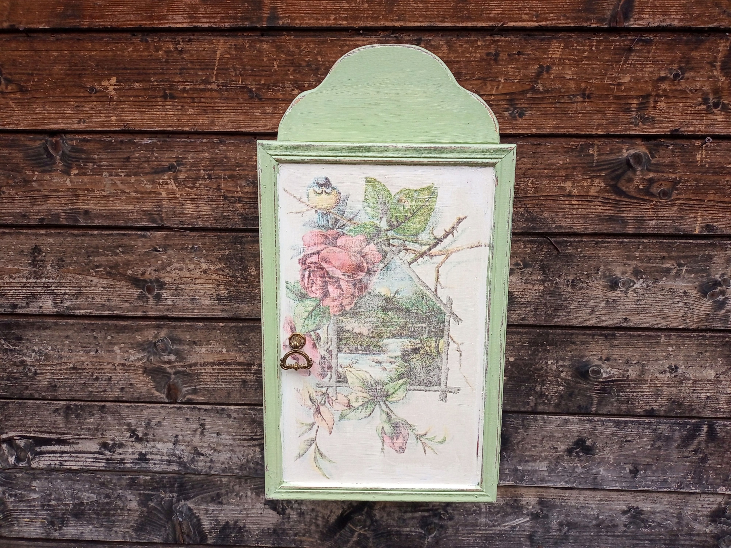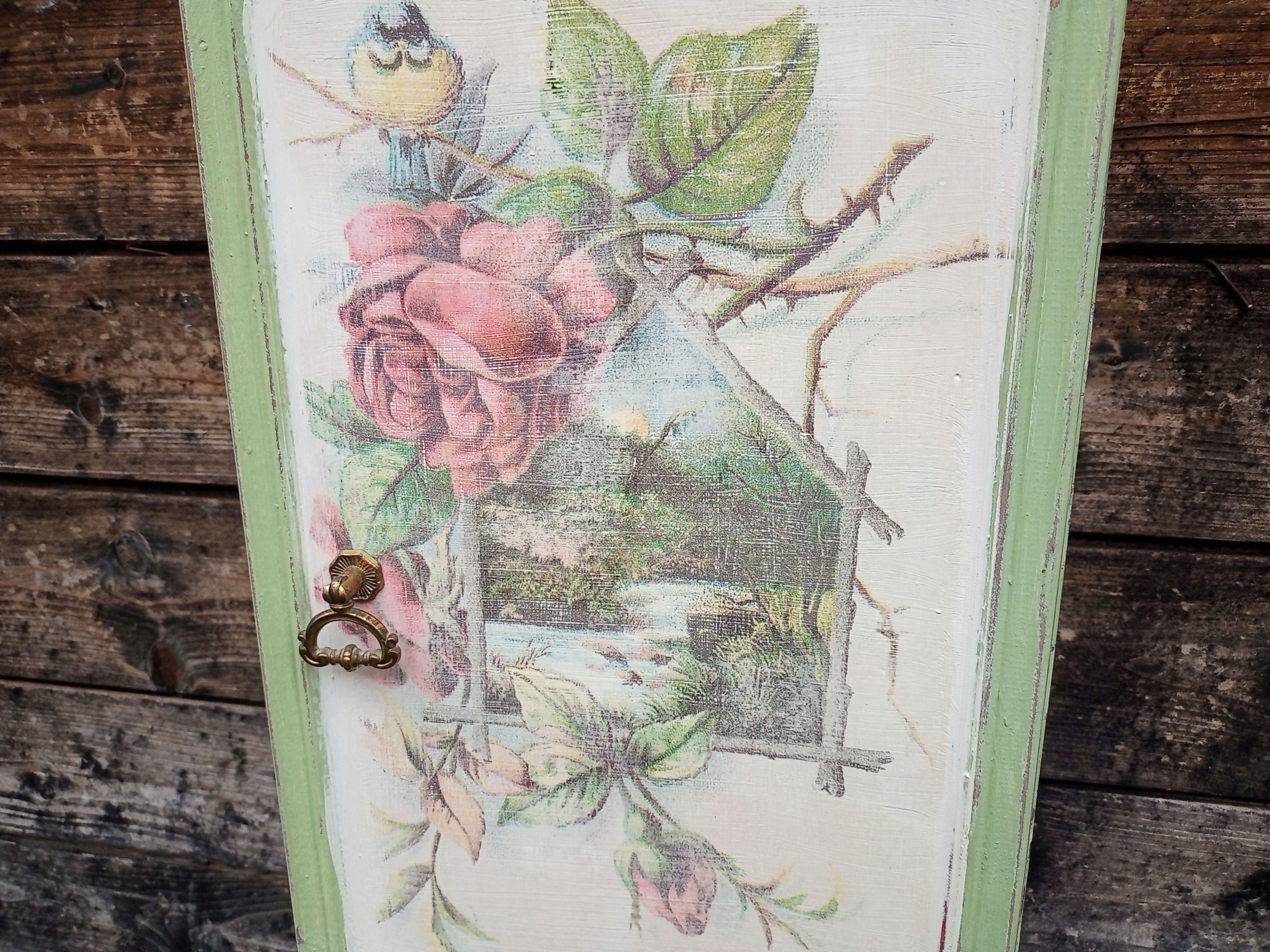 Деревянный окрашенный потертый шикарный висящий шкаф