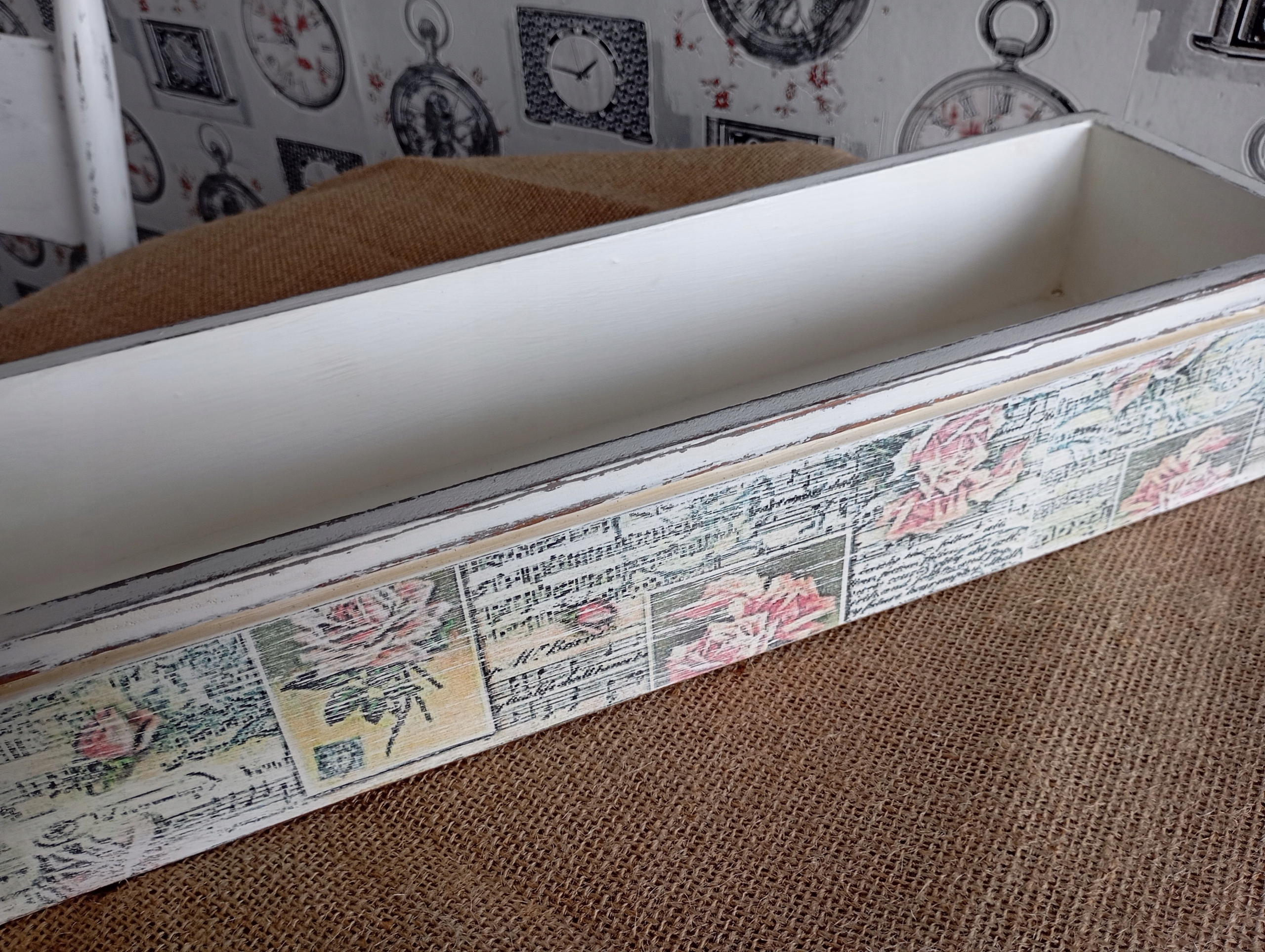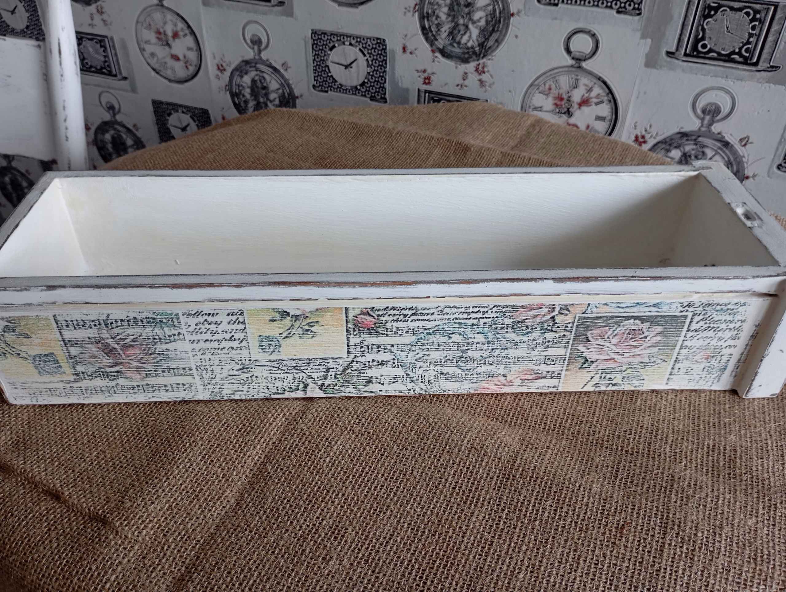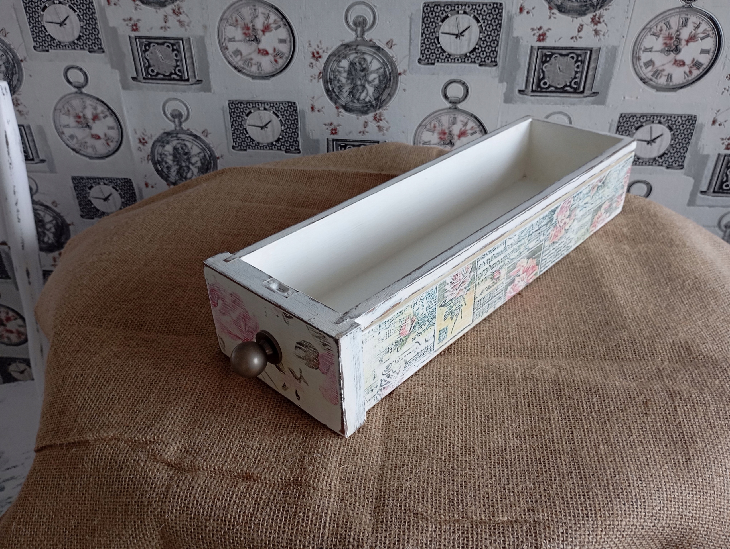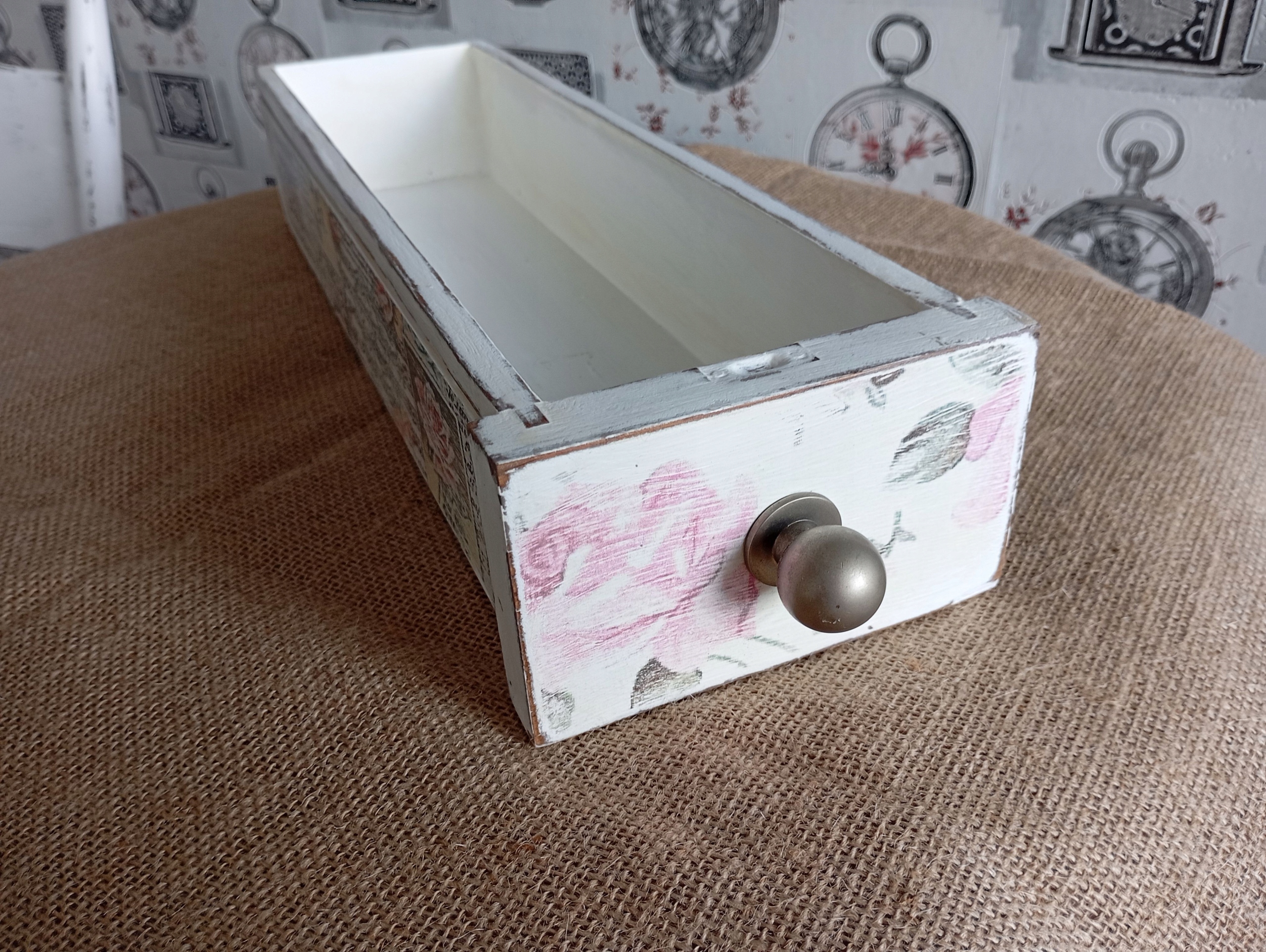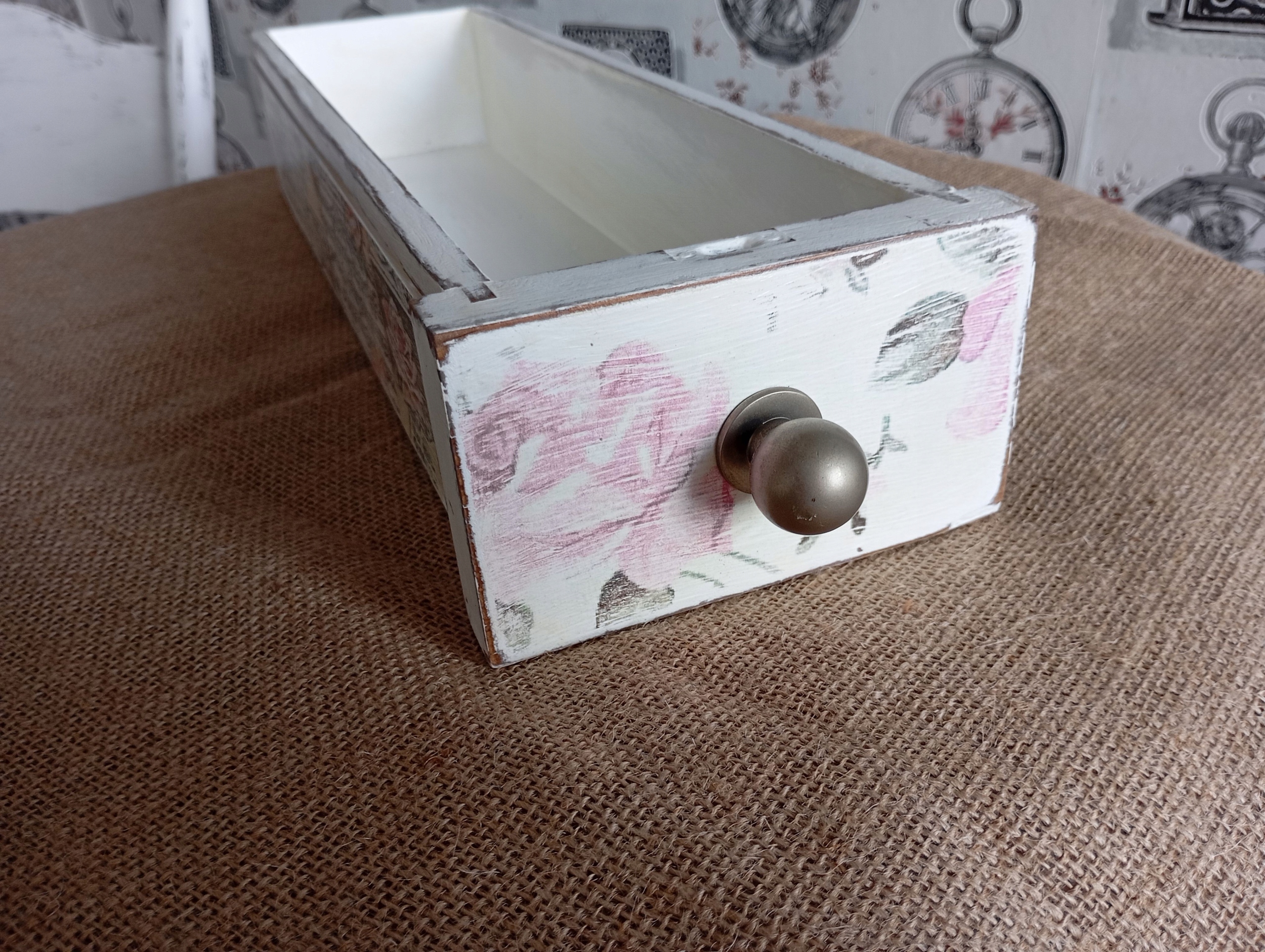 DREWNIANA MALOWANA SZUFLADKA POJEMNIK SHABBY CHIC