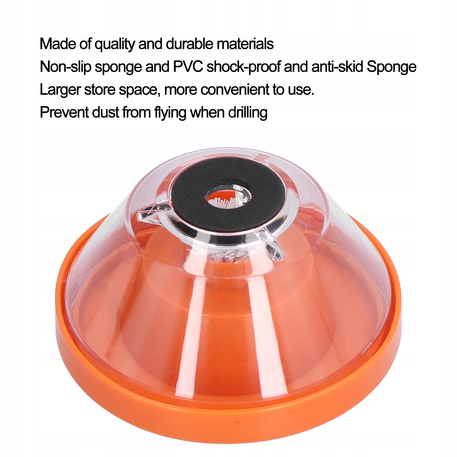 1. Буровой пылесборник изготовлен из высококачественных материалов. Сборник пыли для сверления, включая противоскользящую губку и ударопрочную противоскользящую губку из ПВХ. Чашеобразный дизайн обеспечивает большое пространство для хранения и более удобен в использовании.