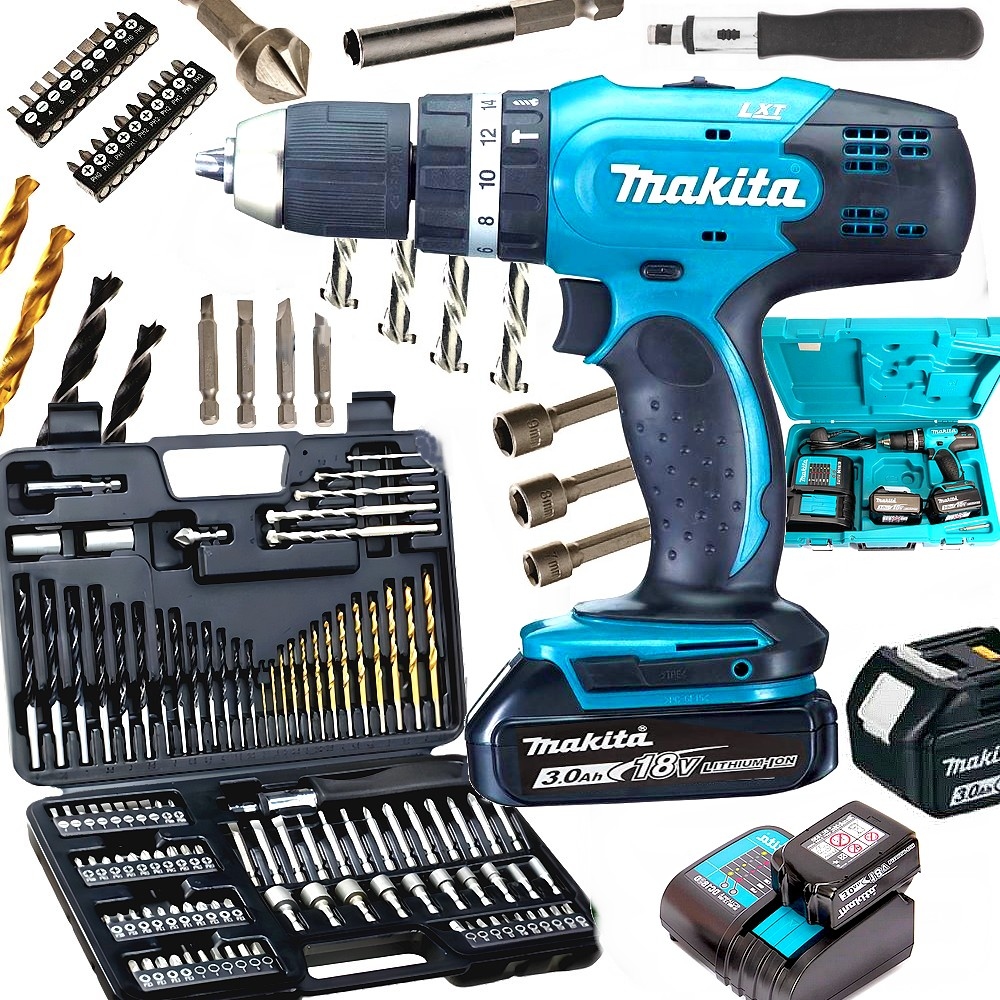 Аккумуляторная ударная дрель-шуруповерт MAKITA, LXT SYSTEM 18 В, литий-ионный аккумулятор, 42 Нм