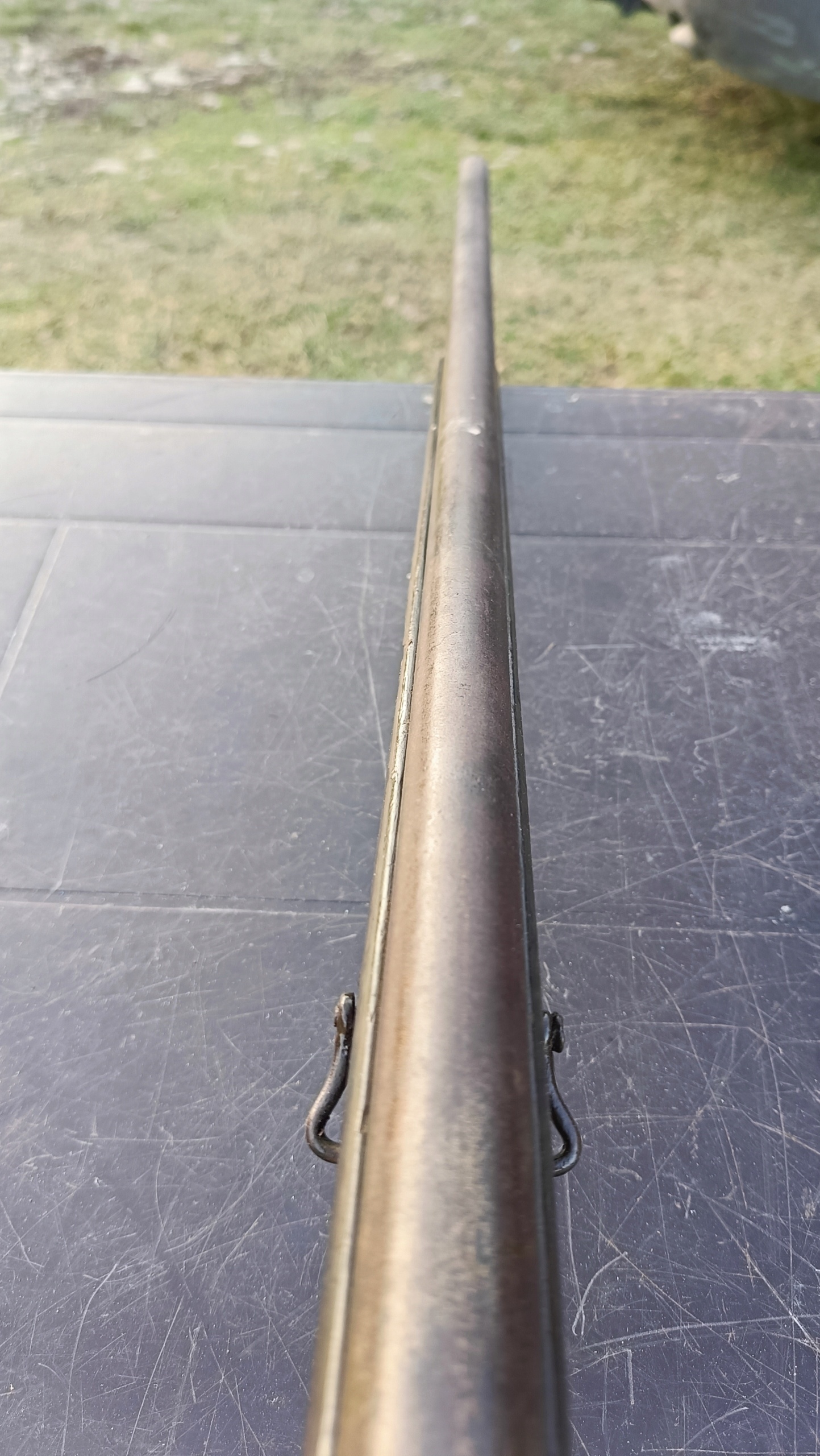 Фронтальная загрузка. Вы можете произвести сухой выстрел, двойную ничью. Замок спускового крючка работает очень хорошо, пружина крепкая. Внутри ствол немного ржавый, в целом состояние хорошее. Дерево все еще находится в относительно хорошем состоянии и покрыто лаком. Хороший камин. Общая длина 136,5 Ствол 99 см. Диаметр ствола 16 мм.
