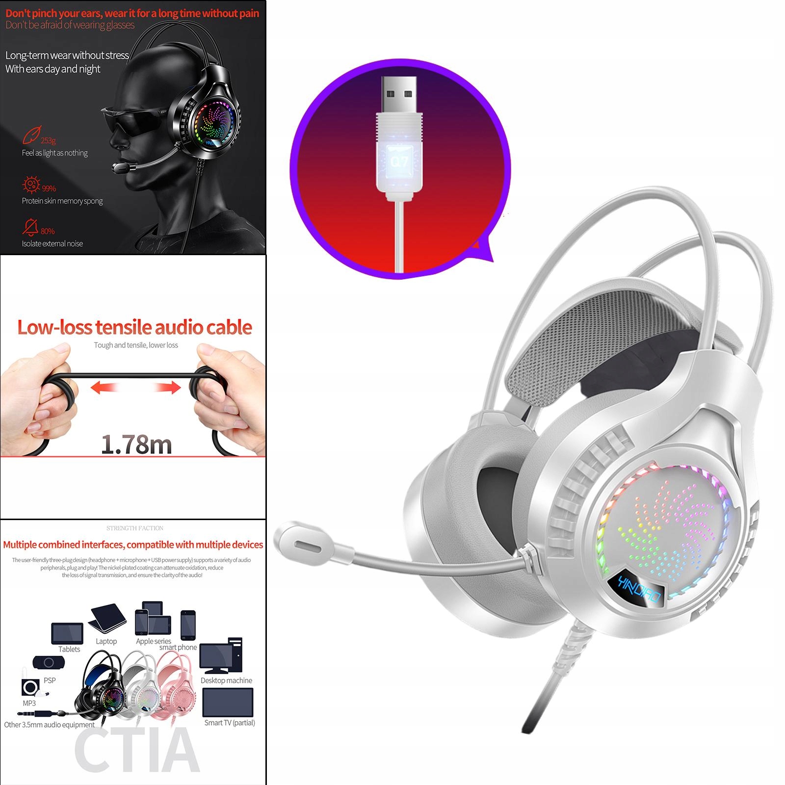 Игровые наушники набор для наушников Мягкие ушные подушки Снижение шума при свете до телефона USB Office 7.1 White