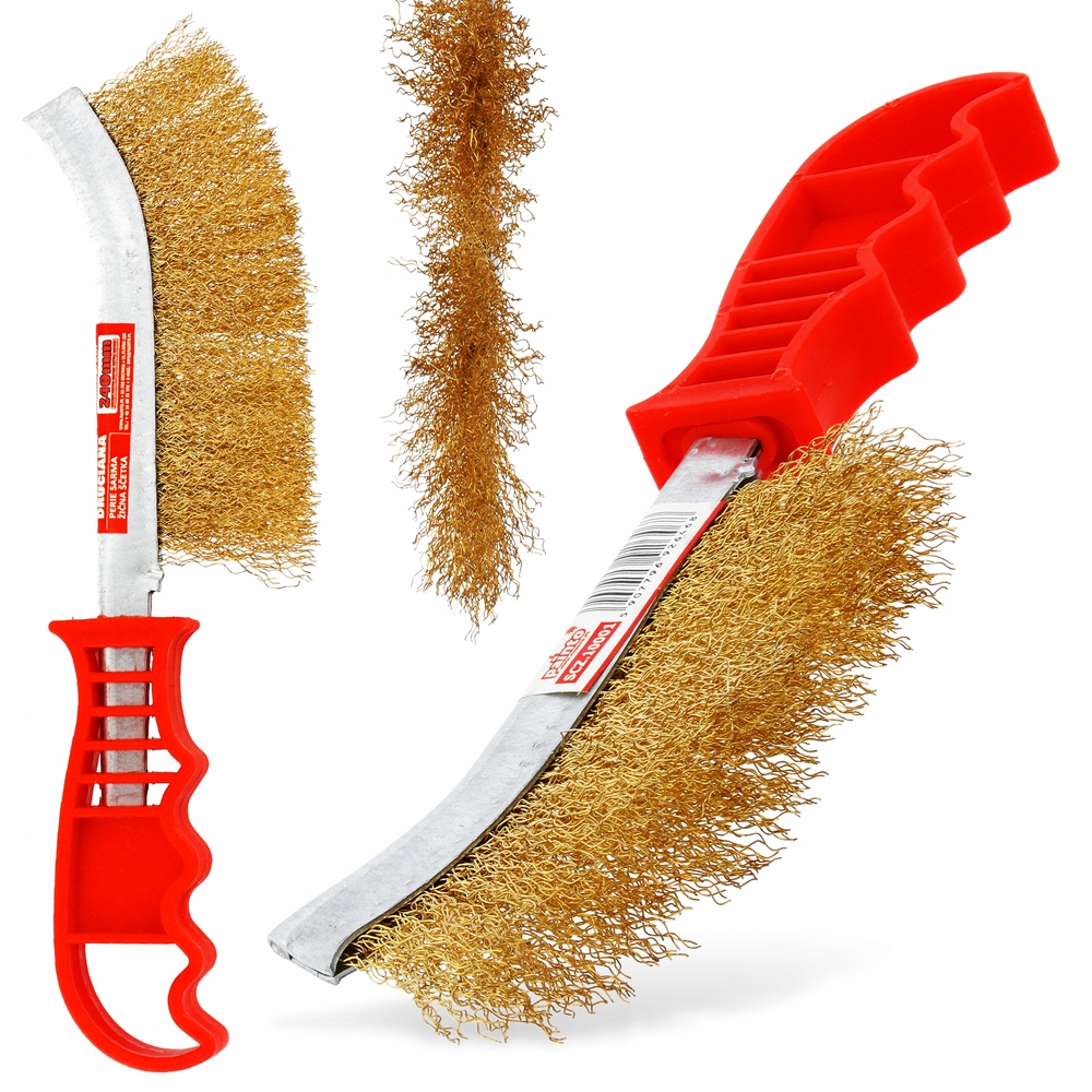 Проволочная щетка — чрезвычайно прочный элемент, изготовленный из материалов высочайшего качества. Проволочные щетинки обеспечивают надлежащую абразивность, благодаря чему грязь быстро удаляется. Ручка изготовлена из пластика. Он имеет специальный профиль, благодаря чему хорошо лежит в руке. Это делает использование инструмента чрезвычайно удобным.