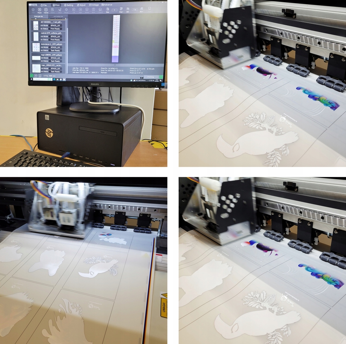 DTF, то есть прямая печать на пленку, — это инновационный метод цифровой маркировки текстиля. Печатая на специальной фольге и используя порошковый клей, мы можем перенести весь напечатанный рисунок на ткань (с помощью термопечати) без трудоемкого и дорогостоящего процесса подготовки.