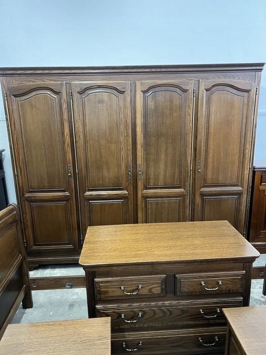Объект продажи - хорошая спальня с твердым дубом, которая состоит из: большого гардероба, 2 кровати стола, комод и кровать с рамой.