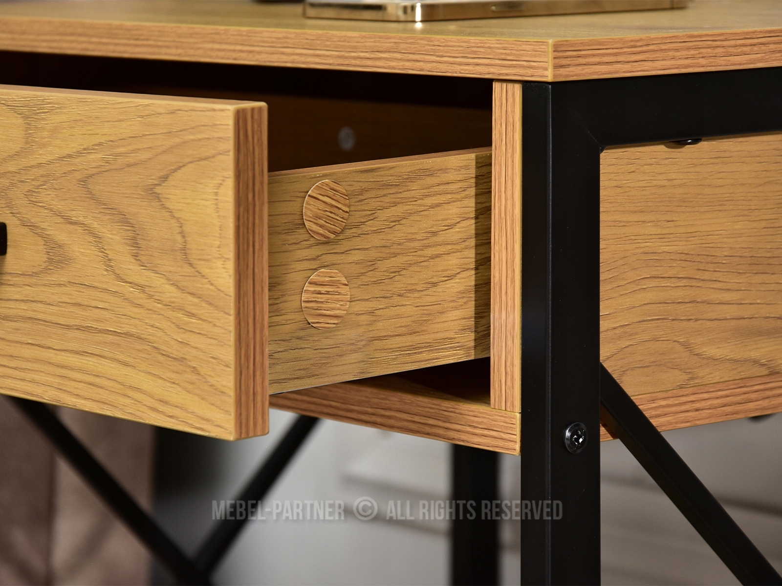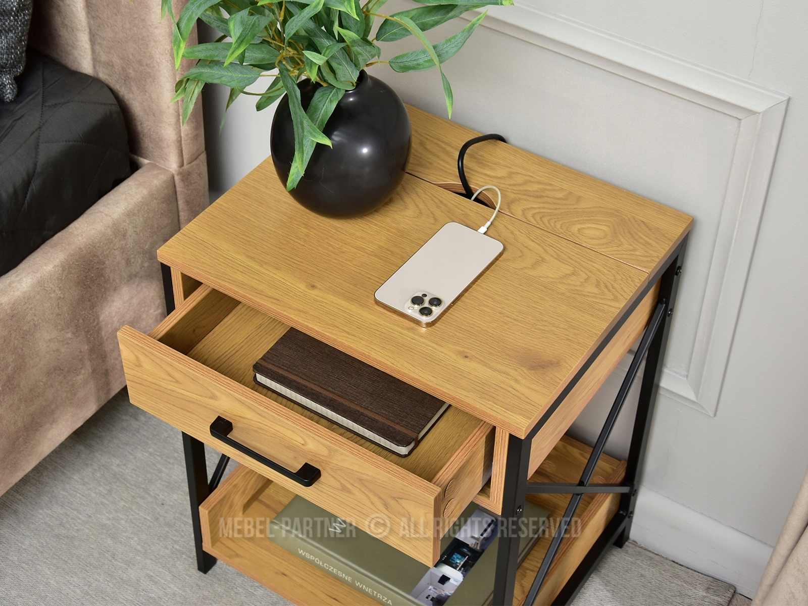 ДУБОВА ТУМБА З ЯЩИКОМ СТОЛИК З РОЗЕТКОЮ ТА USB TORI ЧОРНА РАМА