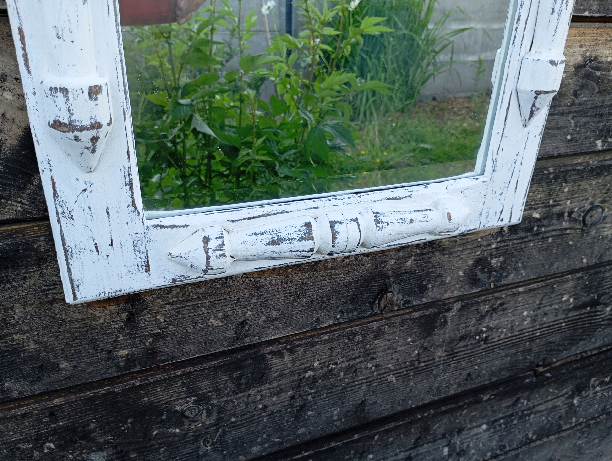 Деревянная рама, выкрашенная в белый цвет, потертая, намеренно состаренная.