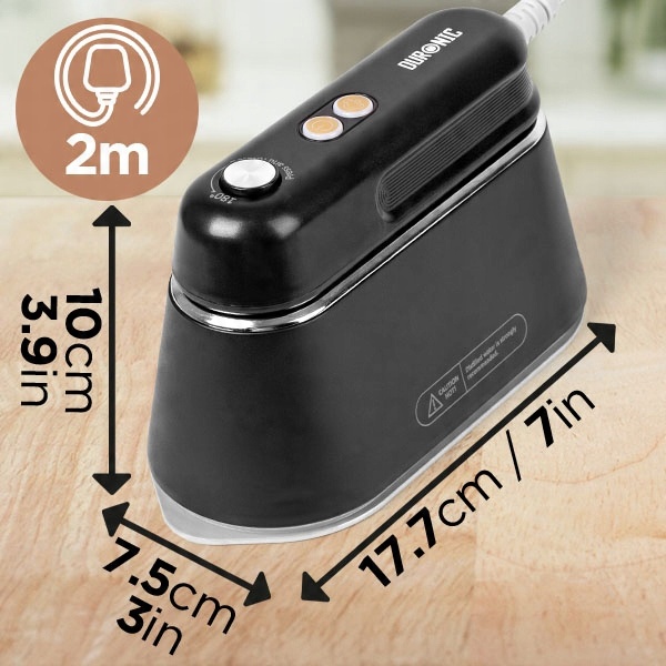 Размеры утюга в сложенном виде всего 17,7 x 10 x 7,5 см. Размер стопы 20,5 х 10 х 1,5 см. Удобный «носик» облегчает попадание утюга в укромные уголки под пуговицами и краями рубашки.Кабель питания длиной 200 см/78,5 дюйма оснащен европейской вилкой.