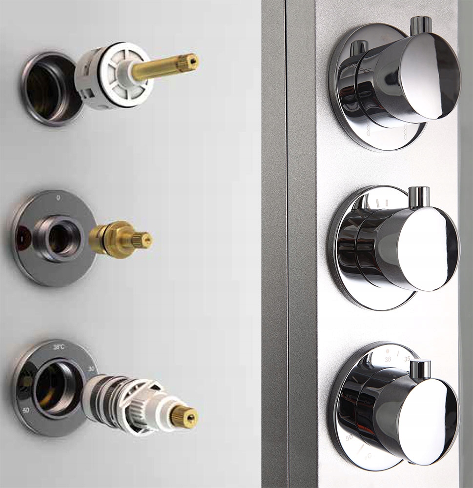 Батарея разработана для обеспечения превосходного качества и долгосрочной работы. Если потребуется техническое обслуживание, его можно легко выполнить, сняв ручки спереди. Внутренние части смесителя имеют высочайшее качество. Термостатическая вставка производства Vemet. Компания Vemet известна в сантехнической отрасли своими высококачественными деталями. Совет: рекомендуется раз в месяц во время использования переключать термостат с самого холодного на самый горячий, чтобы продлить срок его службы.
