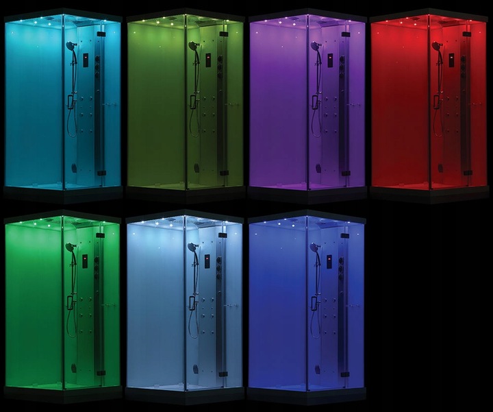 - Панель управления интуитивно понятна и проста в использовании. Он имеет тактильные кнопки и ряд полезных функций. Вы можете изменить интенсивность освещения (3 уровня) и ее цвет (7 типов). На панели мы также можем подключиться к Bluetooth, которая построена -в и воссоздать музыку из нашего любимого плейлиста. Панель также имеет функцию запуска генератора Steam и Fan. Используя датчик температуры, можно отобразить токурную температуру в салоне на панели. Парогенератор может быть установлен на длину работы, и даже какую температуру нагревает салон.