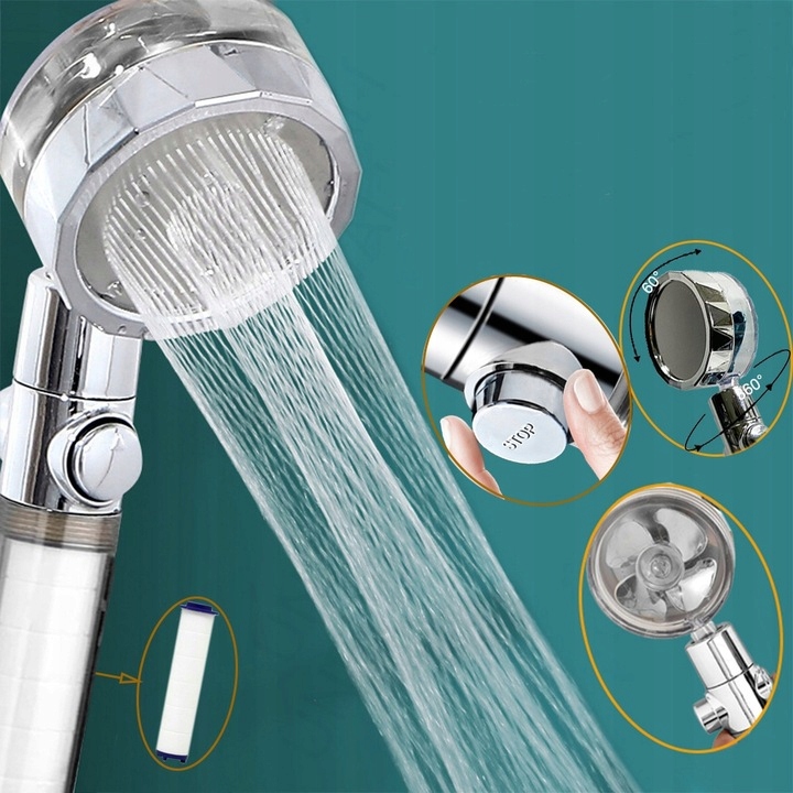 ДУШЕВОЙ РУЧНОЙ С ФИЛЬТРОМ ТУРБИНЫ, ВРАЩАЮЩАЯСЯ ГОЛОВКА НА 360°