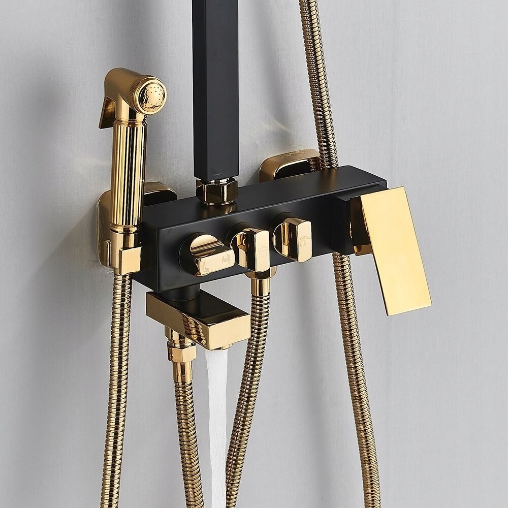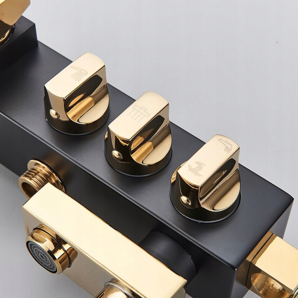 Стильный и современный душевой набор в красивом полированном золотом и матовом черном цвете