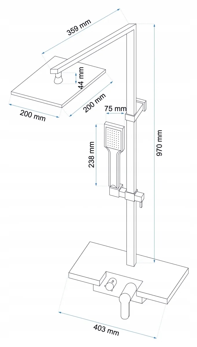 - В комплект входит: Полка со встроенным смесителем и изливом, душевой шланг с трубкой, стальной тропический душ
