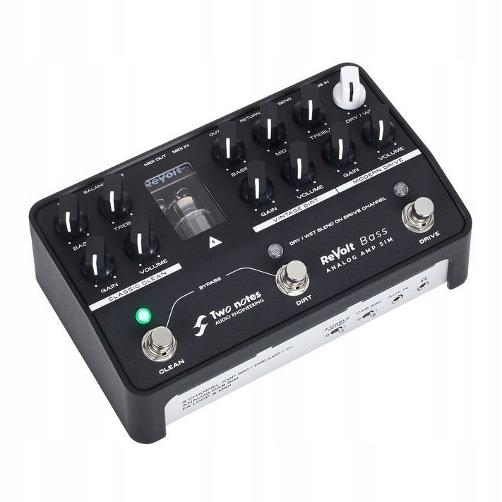 Сердцем аналоговой схемы трехканального восстания баса является высоковольтная трубка ECC83, которая обеспечивает исключительно теплый звук с богатыми обертонами и живой динамикой. Канал «классического чистого» обеспечивает полный и мощный звук, который можно точно отрегулировать с использованием 2-полосного тонального управления. Канал «винтажной грязи» четко ориентирован на грязную измельчение британских басовых усилителей и обеспечивает мощный звук перегрузки с огромной настойчивостью. В свою очередь, канал «Современный привод» обеспечивает современный звук искажения с максимальным усилением, в то время как чистый сигнал, который можно смешать, используя управление «сухой/влажной», получает давление и определение минимумов. Оба канала двух примечаний Revolt Bass также оснащены точным 3-полосным эквалайзером для управления тоном. Наконец, моделирование аналогового динамика обеспечивает подробное впечатление о звуке классического басового шкафа 8x10