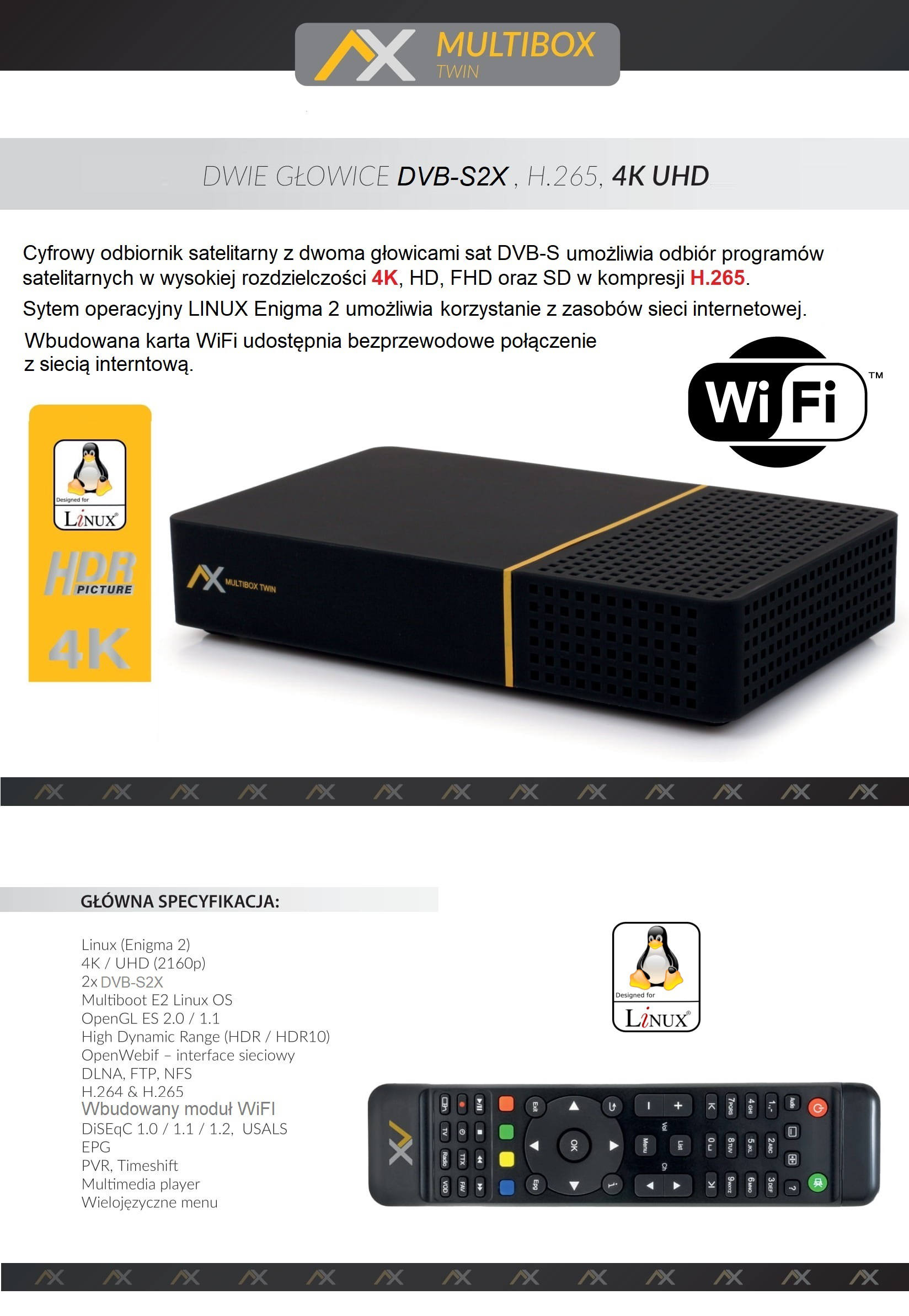 DVB-S2X AX MULTIBOX 4K UHD Linux / Android-тюнер