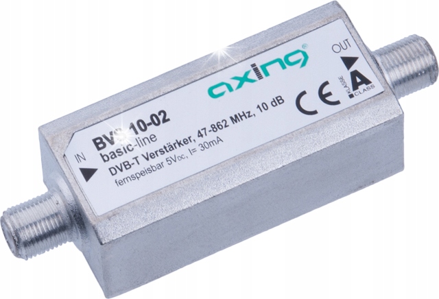 Усилители линий BVS 10-02 BVS 10-02 используются для укрепления наземных телевизионных сигналов и радио в полосе 47-862 МГц. Блок питания для усилителя передается через выход сигнала (линейный усилитель). Усилитель заключен в электромагнитно плотный металлический корпус, заканчиваемый гнездом и подключением с помощью F. Antennas.