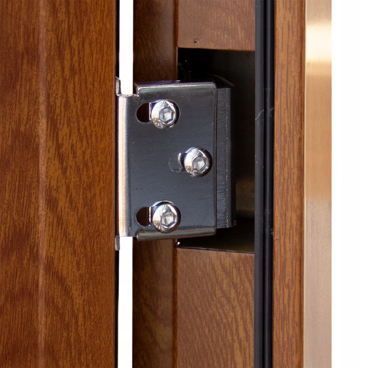 Двери оснащены одним центральным замком с девятью точками запирания, дополнительным дневным замком и четырьмя регулируемыми петлями.