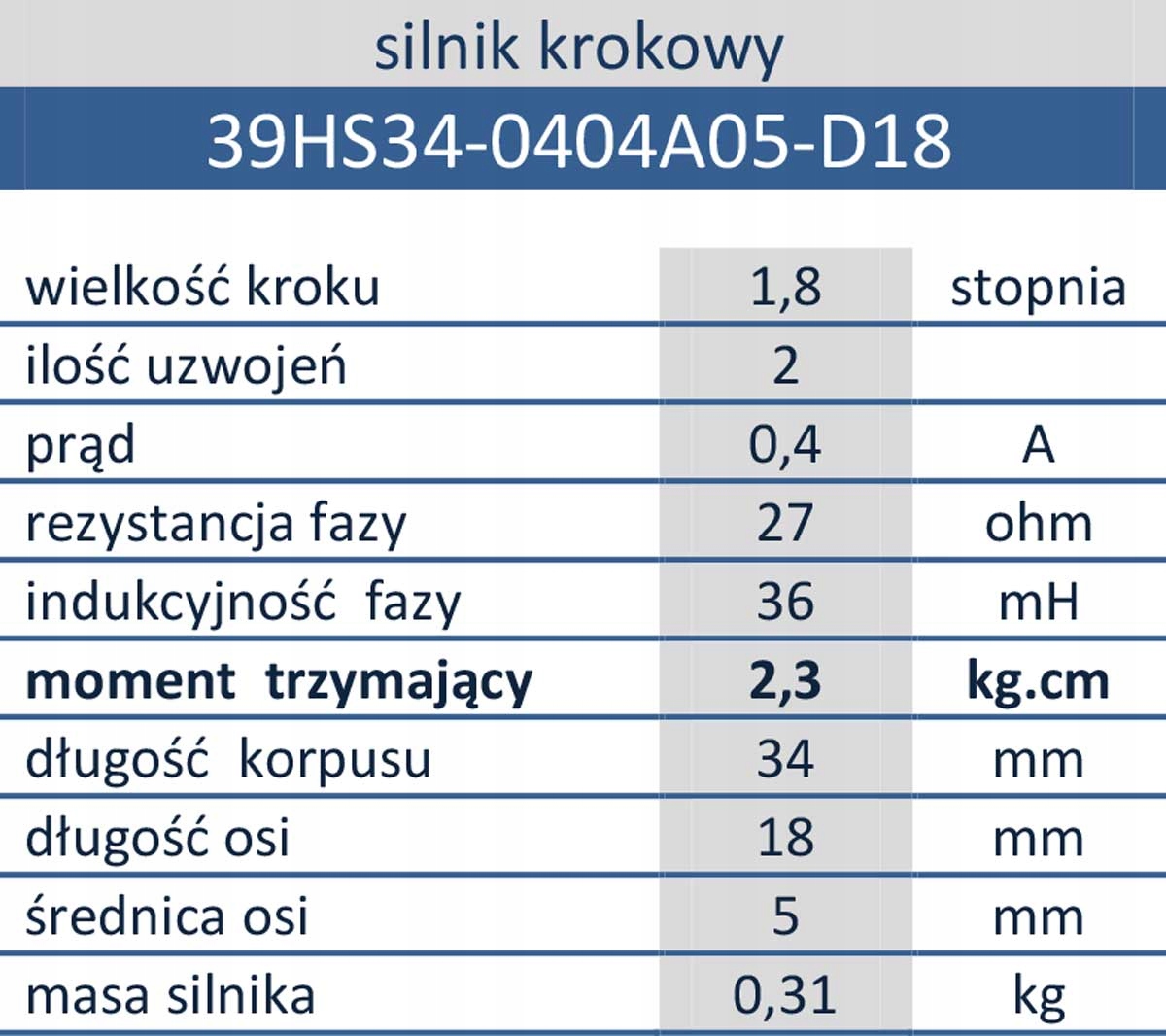 - удерживающий момент 2,3кг.см