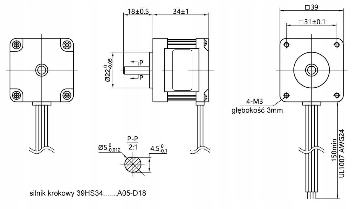 Биполярный шаговый двигатель (4-проводной), размер NEMA16, тип 39HS34-0404-A05