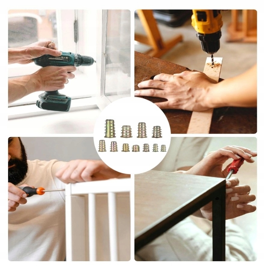 Полный набор двух -тиновых муфтов , изготовленных из высококачественного сплава цинка, идеально подходит для точной и постоянной установки в дереве, копыточатка MDF. Набор включает в себя элементы 230 различных размеров - от M4 до M10 - что позволяет универсально использовать в мебели и DIY.