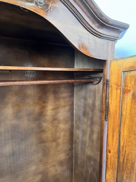 Шкаф двухдверный. Он изготовлен из древесины ели. Очень хорошенькая. Имеются следы использования, особенно снаружи; многочисленные, но незначительные ссадины. Внутри есть штанга с полкой, салон в хорошем состоянии. Замок функциональный, в комплекте есть ключ. Шкаф не подлежит разборке и доедет к новому владельцу в целости и сохранности. Готов к размещению.