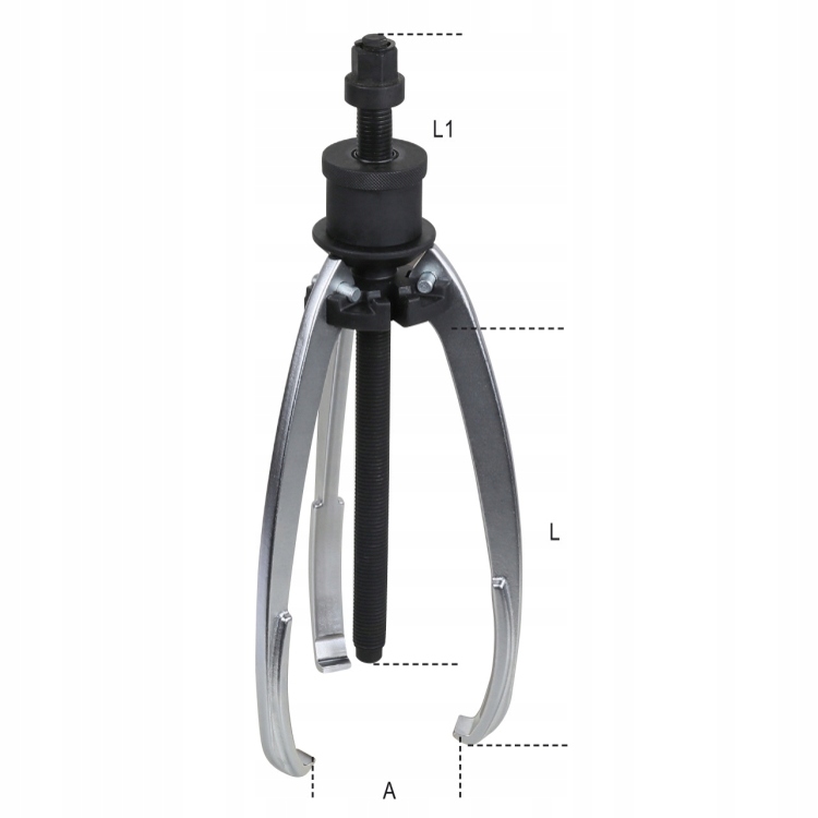 Эта особенность облегчает поиск и фиксацию съемника на демонтируемом элементе. После фиксации съемника в рабочем положении рычаги можно зафиксировать с помощью кольцевой гайки.