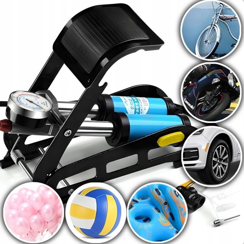 МОЩНЫЙ ДВУХПОРШНЕВОЙ АВТОМОБИЛЬНЫЙ ВЕЛОСИПЕДНЫЙ НОЖНОЙ НАСОС С МАНОМЕТРОМ