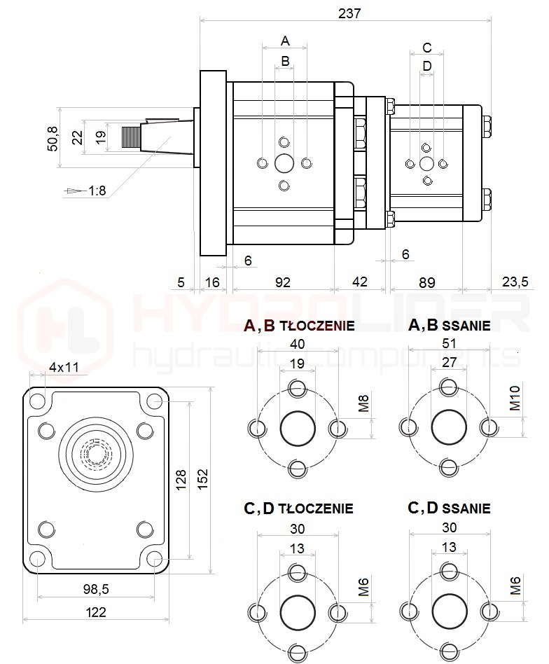 Производитель дает возможность свободного давления на обе системы, которые поставляют отдельные секции насоса. Пользователь должен помнить, чтобы установить переполненные клапаны в обеих разделах, чтобы мощность второго мощности насоса (той сзади) меньше мощности мощности первого насоса. Самым безопасно установить одинаковое давление на обоих насосов, риск неправильного настройки появляется, когда установленное давление на второй насос намного выше, чем на первом насосе. Вы можете узнать больше информации о мощности и настройках давления.