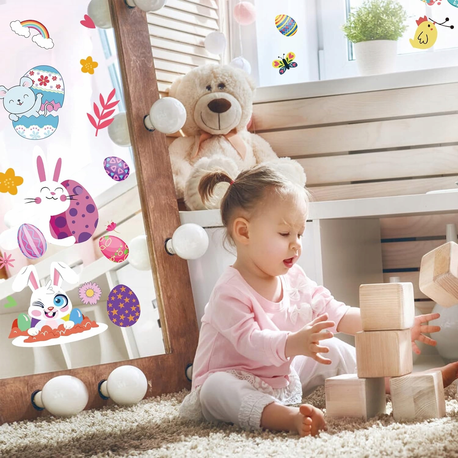 Пасхальная атмосфера: наклейки богаты элементами и яркими цветами, что делает их идеальным выбором для пасхальных украшений. . Детские узоры в виде кроликов и яркие цвета на наклейках помогут создать яркую пасхальную атмосферу. Вы можете украсить свой дом вместе с детьми и членами семьи и приятно провести Рождество вместе.