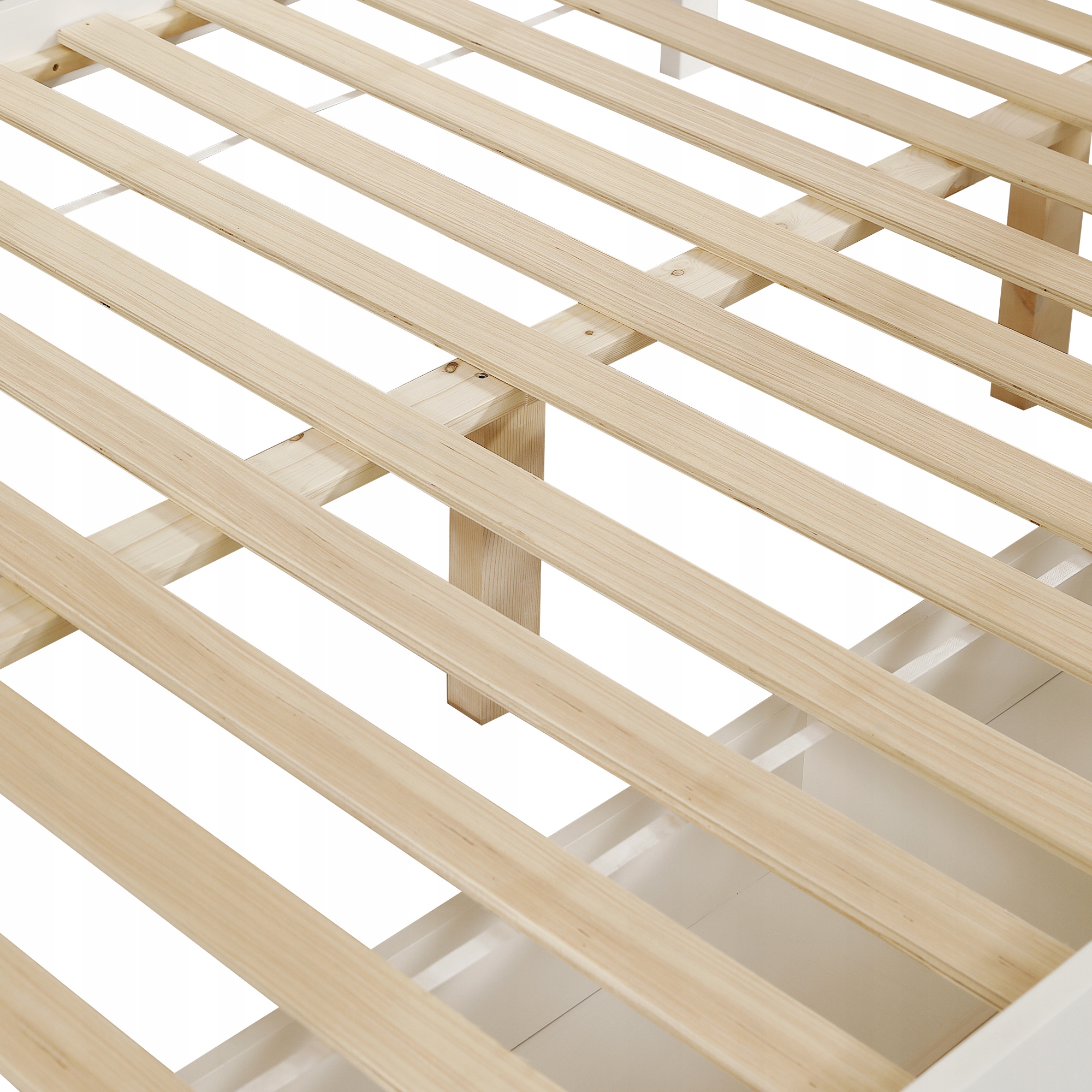 Центральная опорная нога на нижнюю кровать: нижняя двуспальная кровать оснащена центральной опорной ногой, которая обеспечивает дополнительную стабильность. Нога поддержки гарантирует, что кровать останется безопасной и стабильной даже во время интенсивного использования, укрепляя общую структуру кроватей и повышая безопасность.
