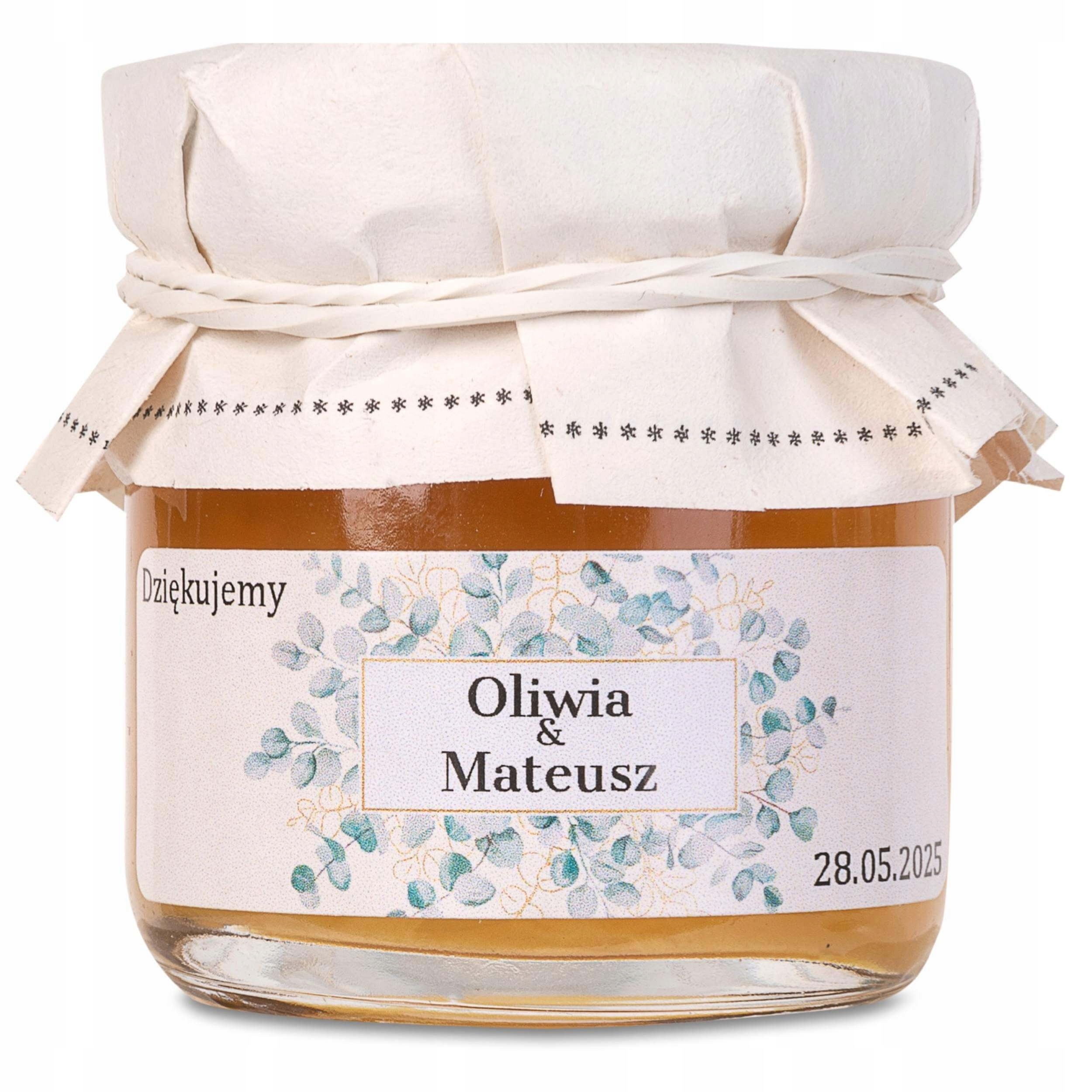 Декоративные 40 г банки, наполненные натуральным джемом с наклейкой в качестве спасибо гостям.