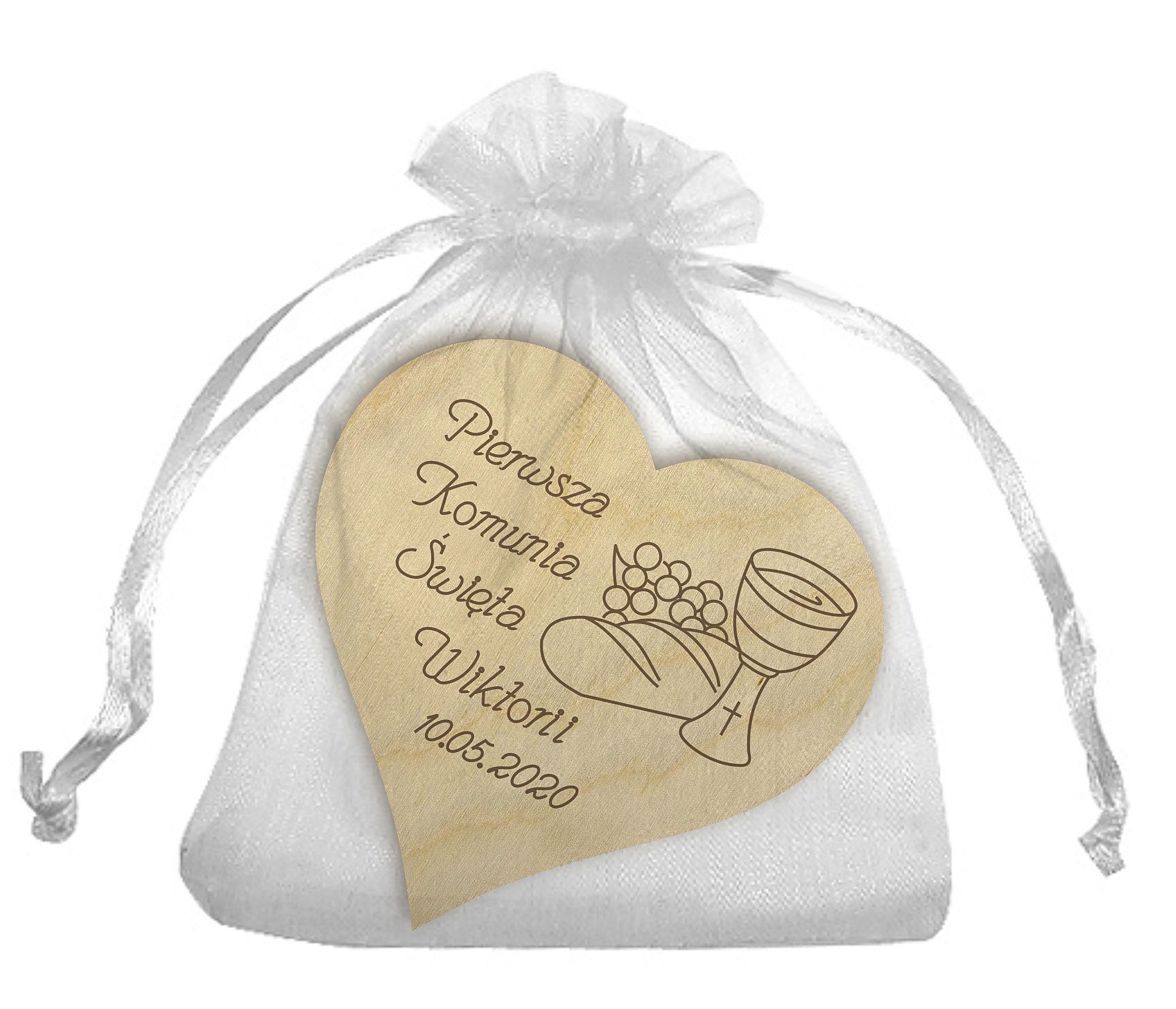 Благодарности упакованы в элегантный белый мешочек из органзы.