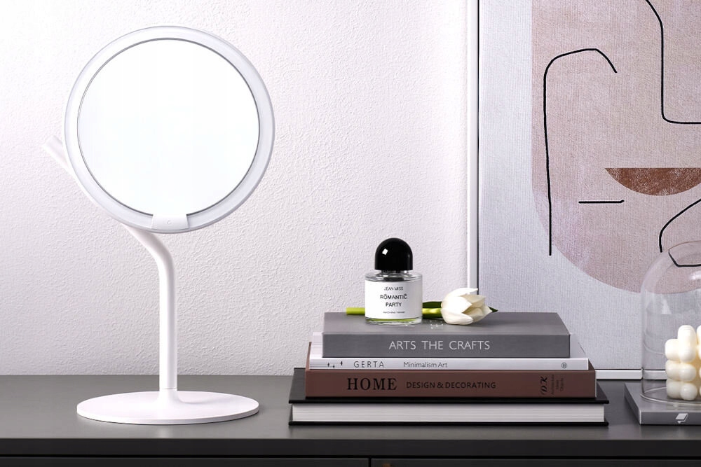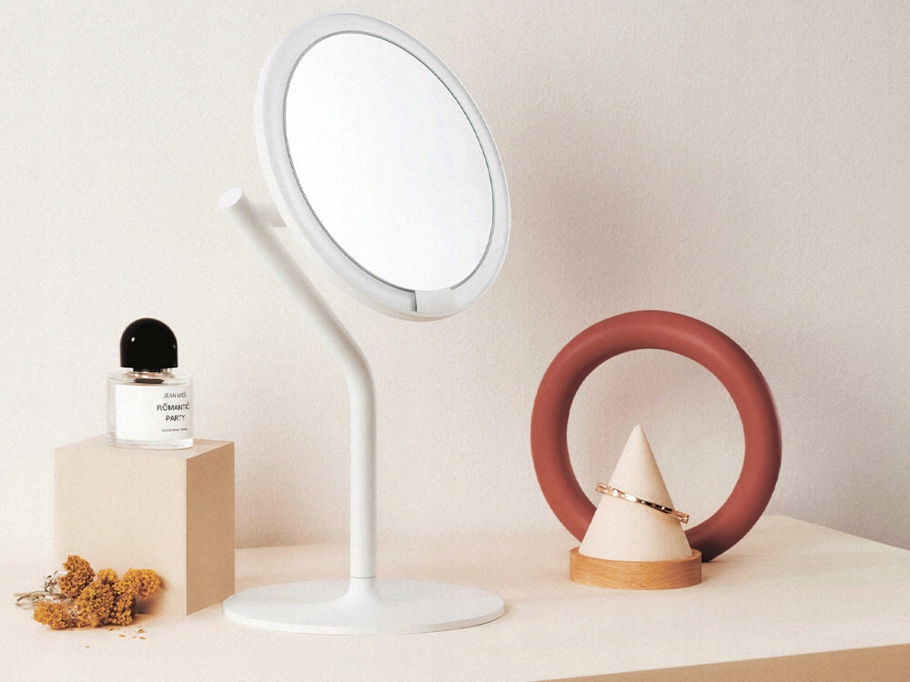 Возможность поворачивать зеркало на 180° позволит настроить его под текущие нужды. Кроме того, на задней панели устройства имеется удобная вешалка для украшений, которая поможет поддерживать порядок на туалетном столике или письменном столе. Зеркало AMIRO легкое и весит всего 493 г, поэтому, сложив его, вы легко поместите его в сумочку или чемодан.