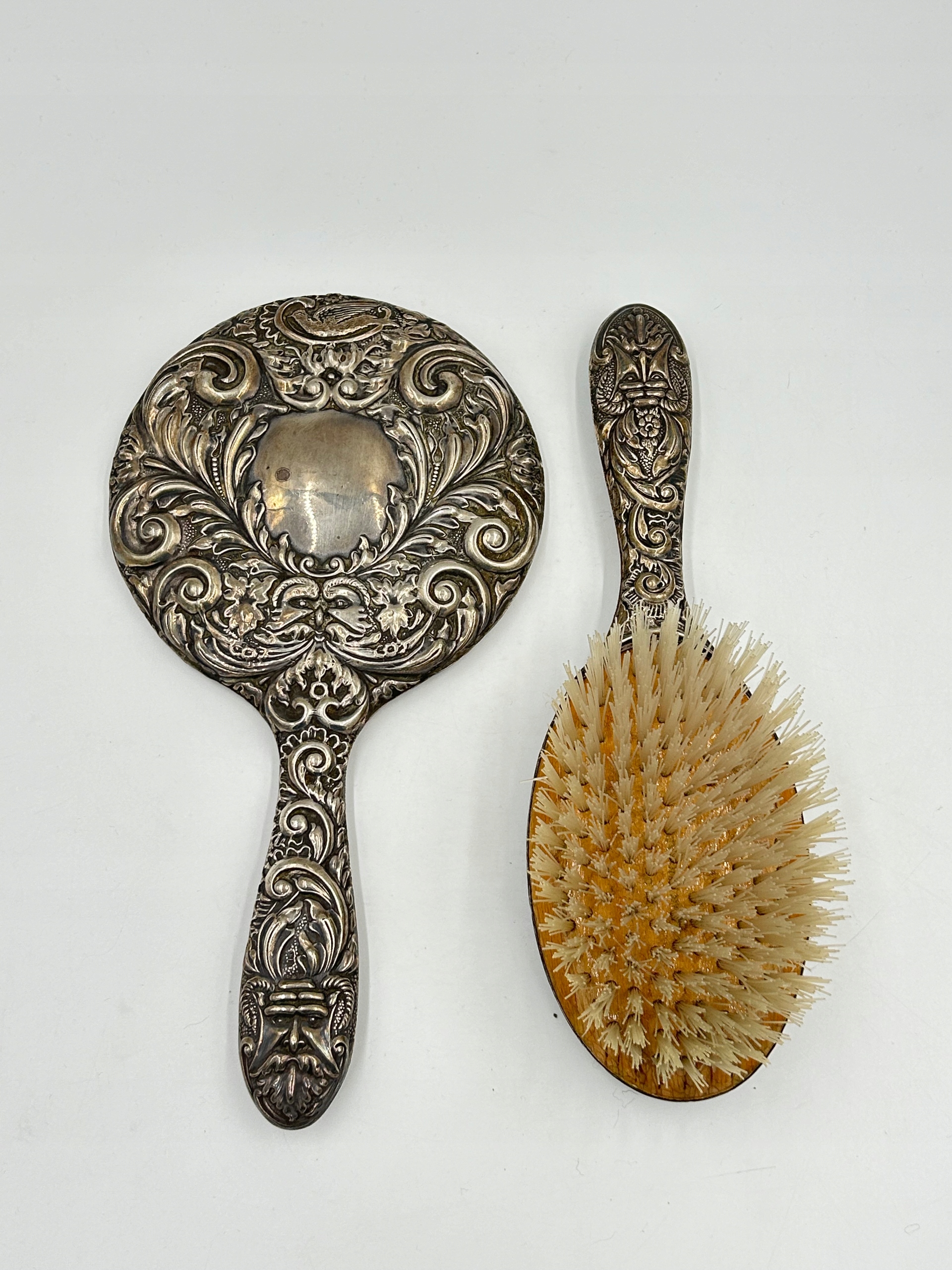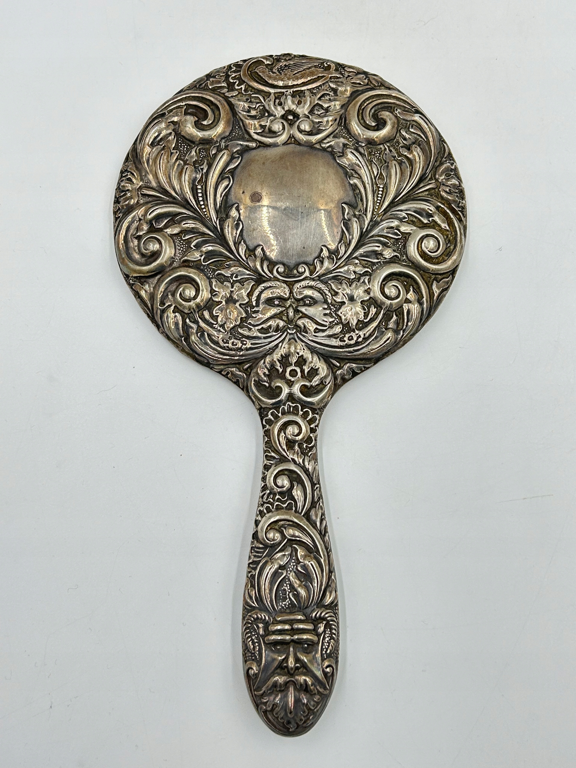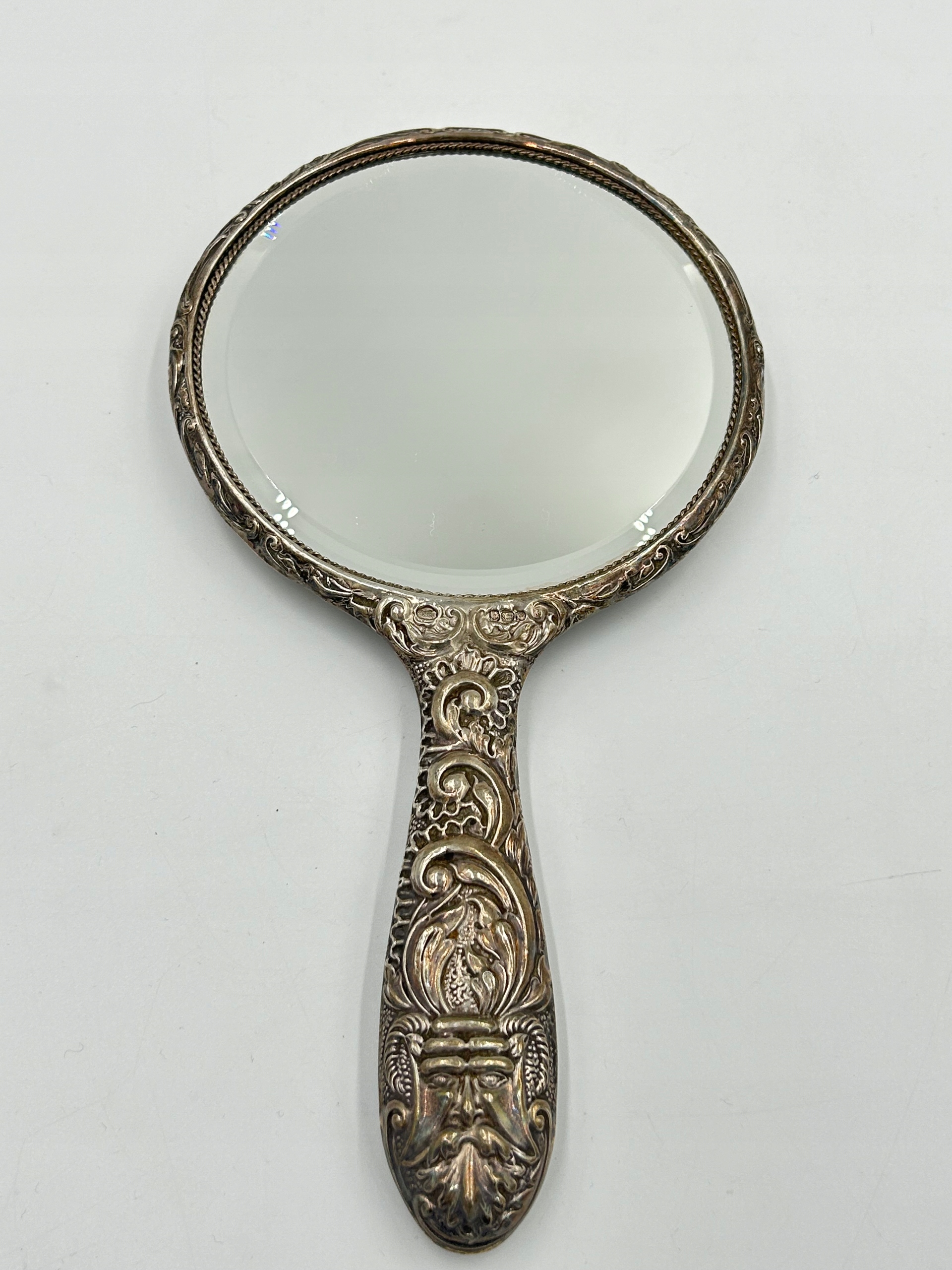 Предмет продажи - красивое зеркало в серебряной раме 925 пробы, с расческой - туалетный набор в стиле модерн. Богато декорированная ручка, фацетное зеркало. Вечная элегантность и классический стиль. Рекомендую в качестве подарка близкому человеку или любителю уникальных вещей.