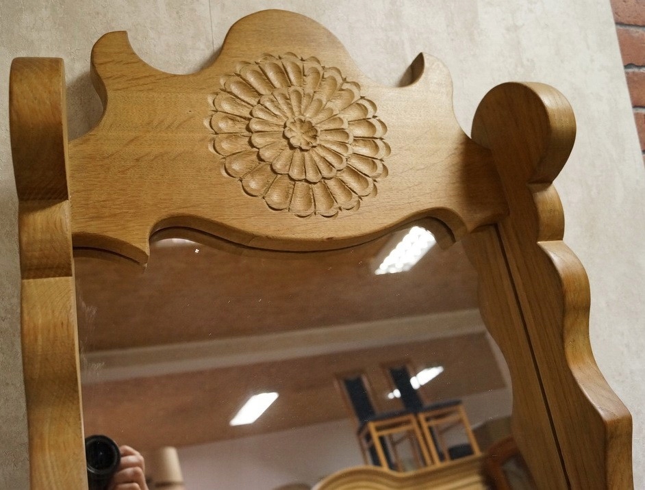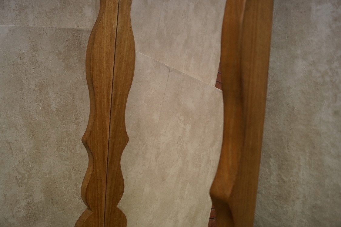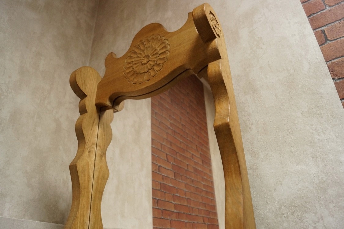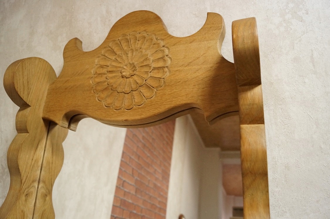 ДЗЕРКАЛО В ДУБОВІЙ РАМІ З ПОЛИЧКОЮ МАСИВНОГО ДУБА d-550