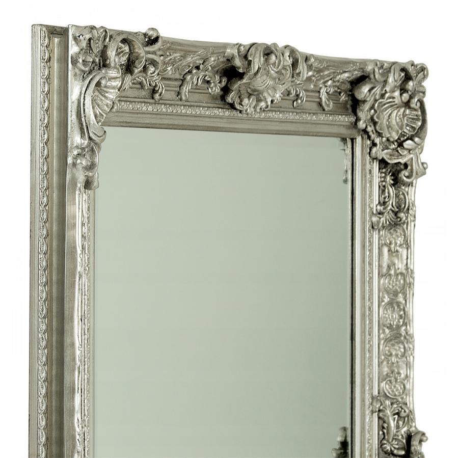 Представляем Вам большое и элегантное зеркало в дворцовой раме! Он имеет скошенную поверхность и прочную рамку с красивой резьбой. Модный цвет состаренного серебра и антикварный декор делают его своеобразной копией. Наше подвесное зеркало уникально благодаря использованию дизайнов прошлых эпох. Представленное украшение сможет проявить свое полное мастерство, например, в гостиной, коридоре или ванной!