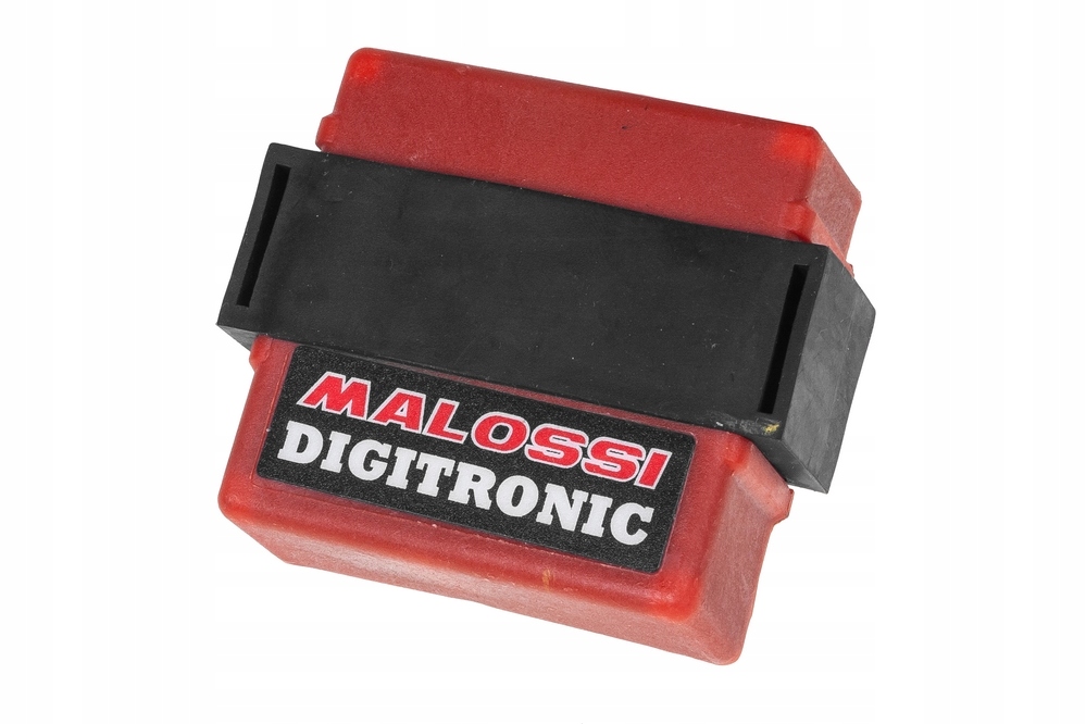 Новый контроллер Malossi Digitronic с регулируемым временем зажигания. По сравнению с оригинальным блоком управления Malossi, в нем полностью изменены карты угла опережения зажигания и увеличен предел оборотов до 15 000 об/мин.