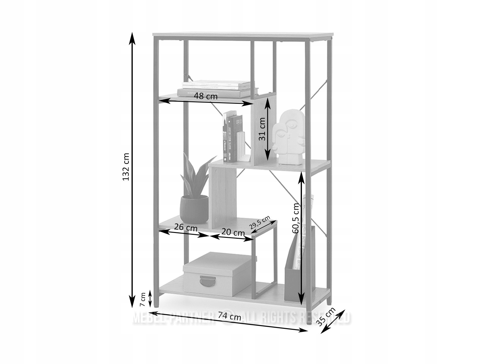 Полка HARPER A с полками теплого оттенка, имитирующего дуб, прекрасно вписывается в различные композиции, от современных до традиционных. Основание из черного металла не только гарантирует стабильность, но и придает стильный индустриальный акцент. С его помощью вы сможете создать уникальный уголок для чтения, который будет одновременно практичным и уютным.